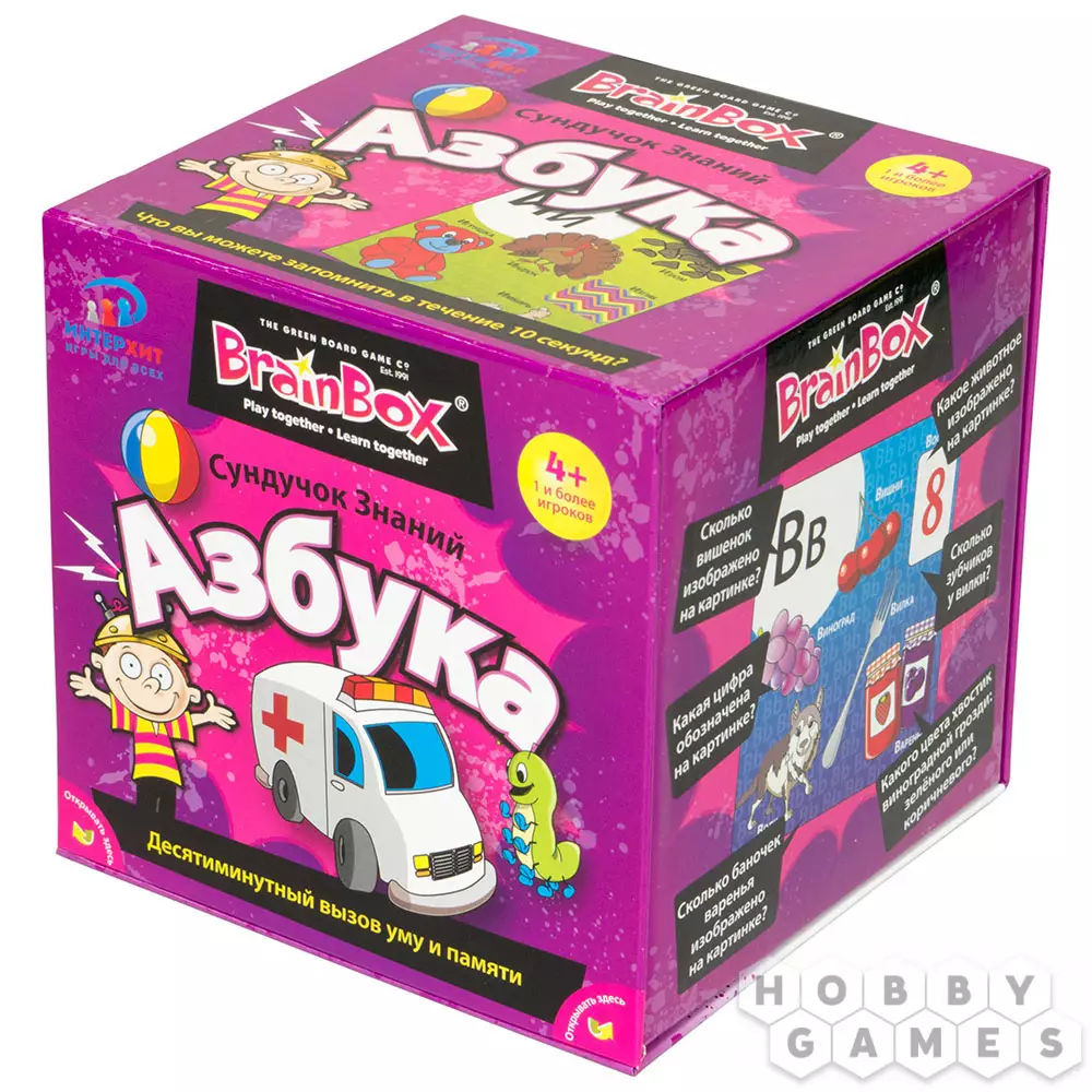 "Сундучок знаний "Азбука" познакомит малышей от четырёх лет с буквами русского алфавита, а также со словами, начинающимися на одну и ту же букву.