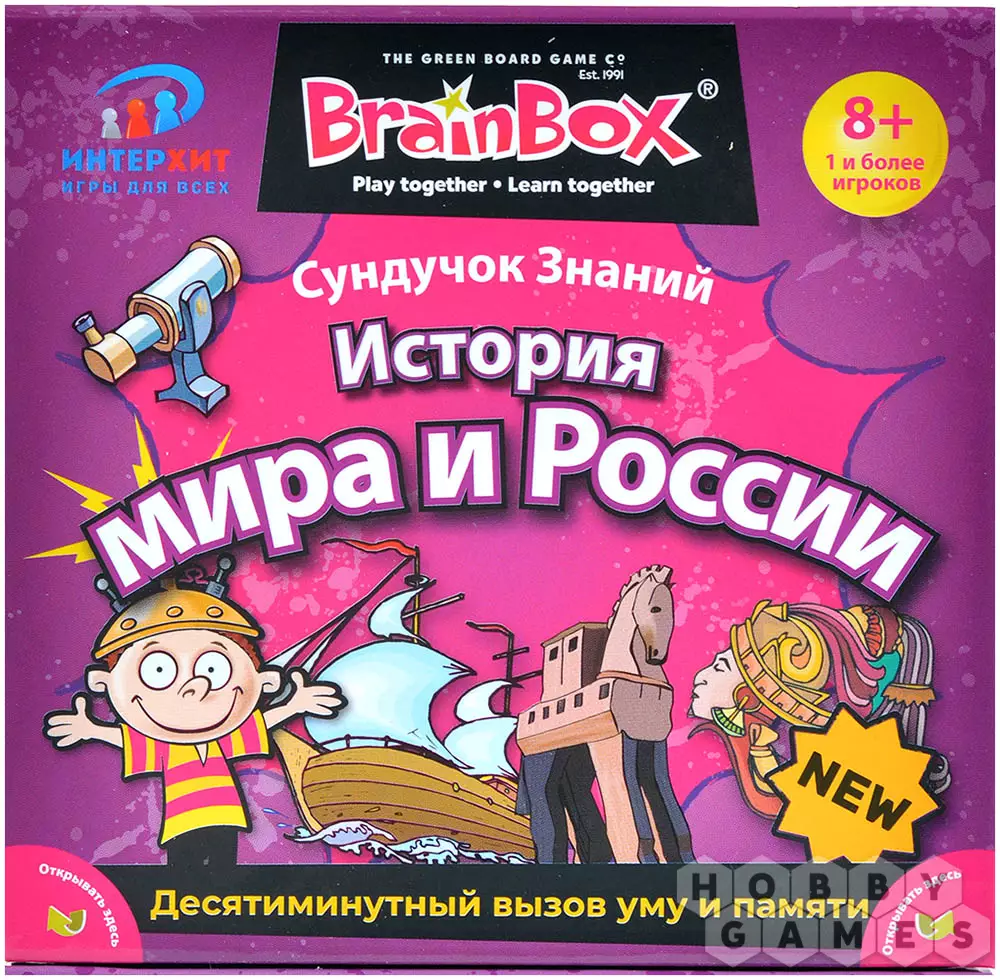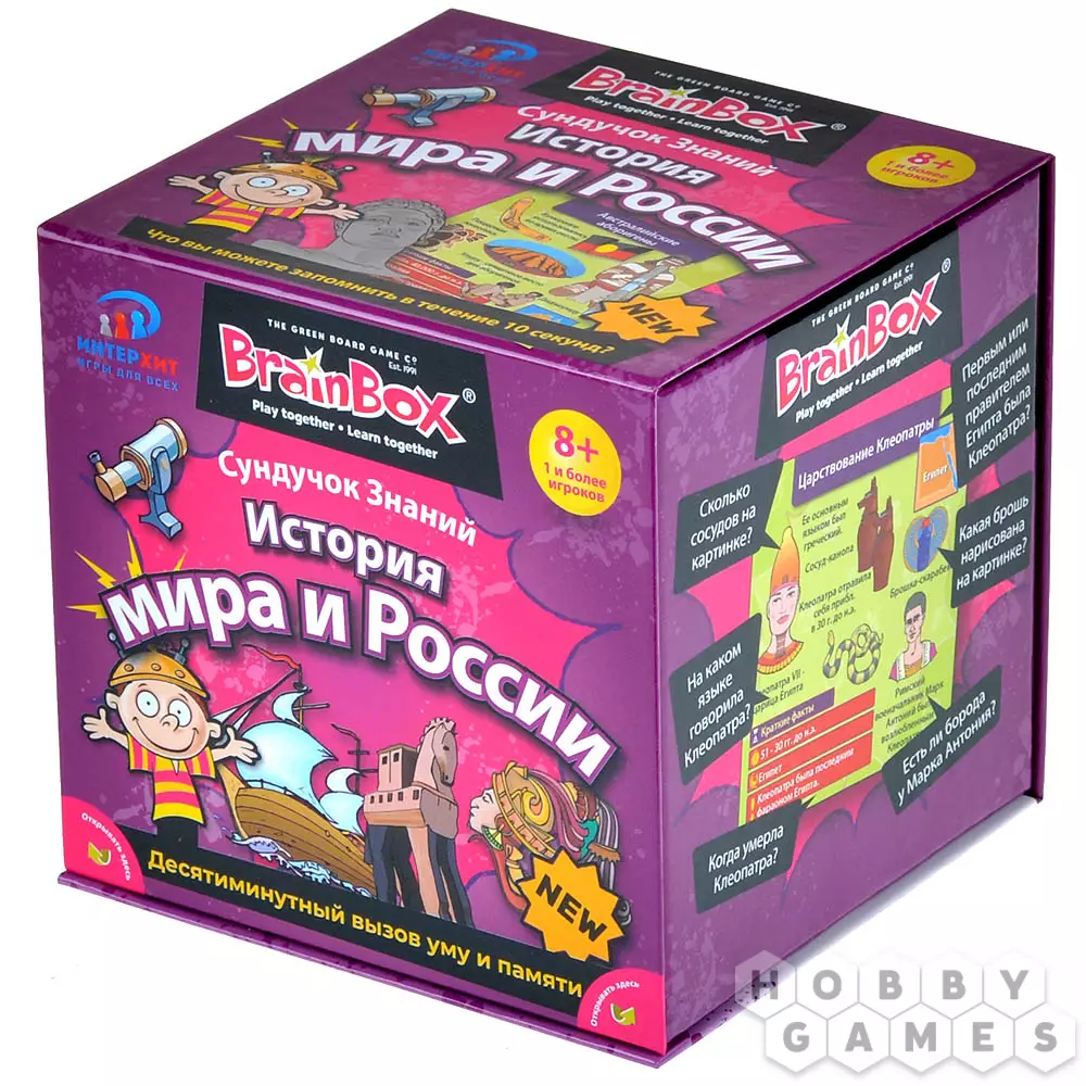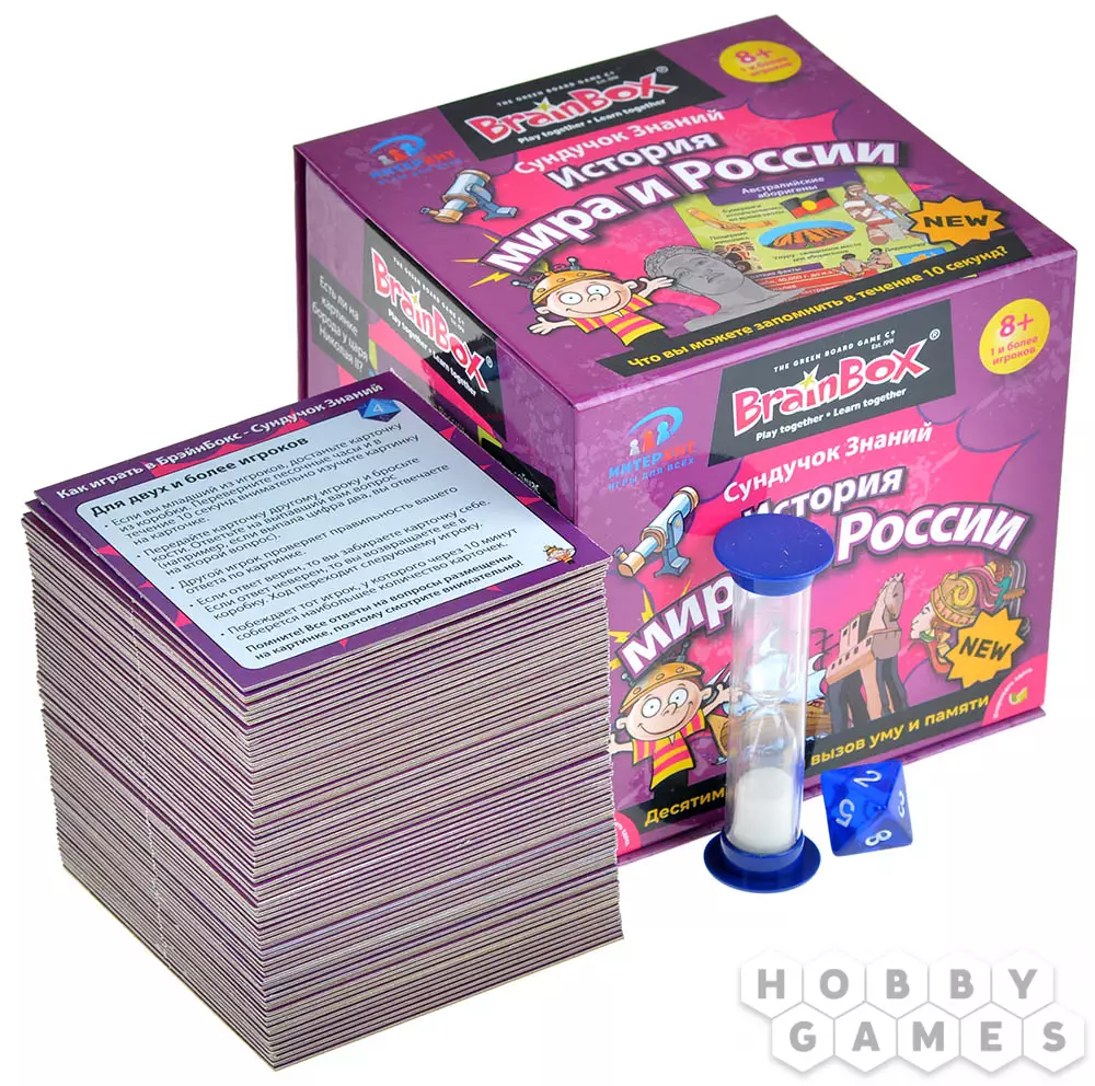 Сундучок знаний "История мира и России" познакомит детей от восьми лет с мировыми историческими событиями, учёными и их открытиями, великими личностями, достопримечательностями нашего мира и России. Настольная игра наполнена красочными карточками с детальными иллюстрациями, которые хочется разглядывать снова и снова. Знали ли вы, что астронавты, впервые приземлившись на луну, провели на поверхности 21 час? А кто точно сможет назвать длину Берлинской стены? Проверьте свои знания и узнайте много нового и интересного!
