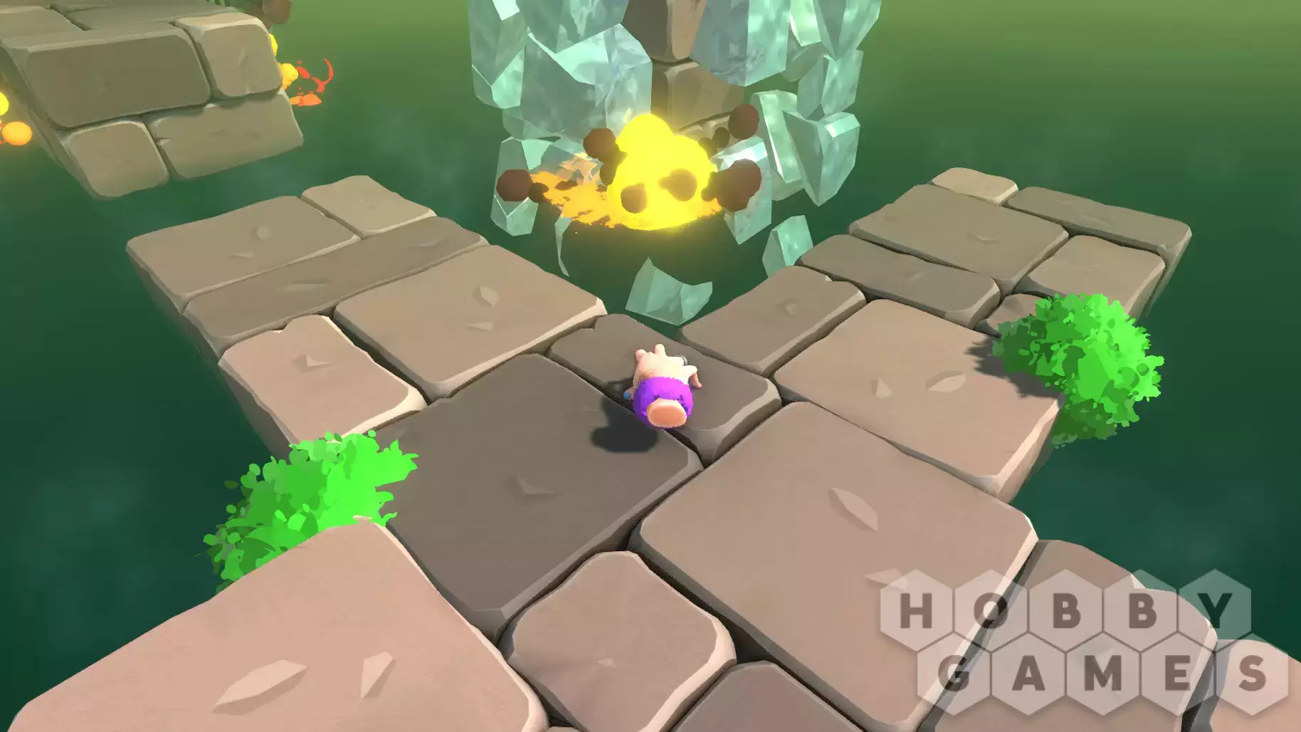 Преодолевайте отвесные стены, катящиеся булыжники, цепи и другие препятствия.