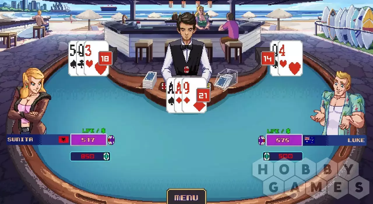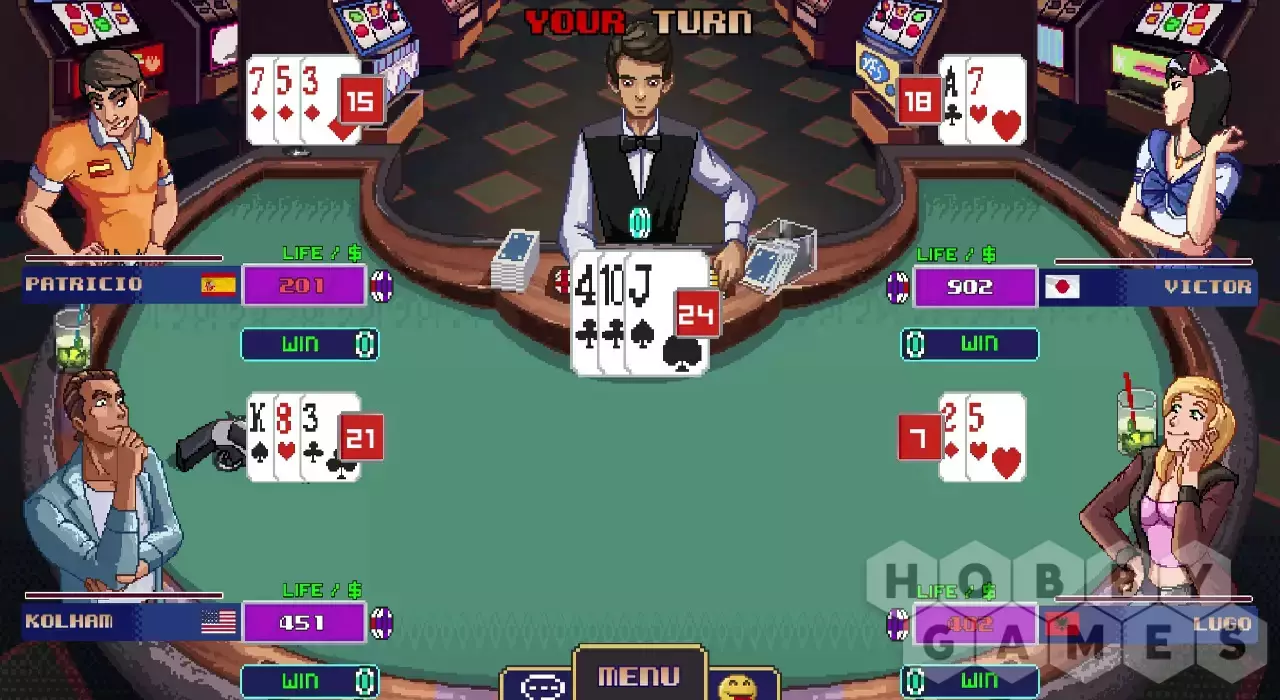 Super Blackjack Battle II Turbo Edition предлагает на выбор 12 персонажей, каждый из которых стремится стать лучшим игроком в блэкджек всех времен и народов.