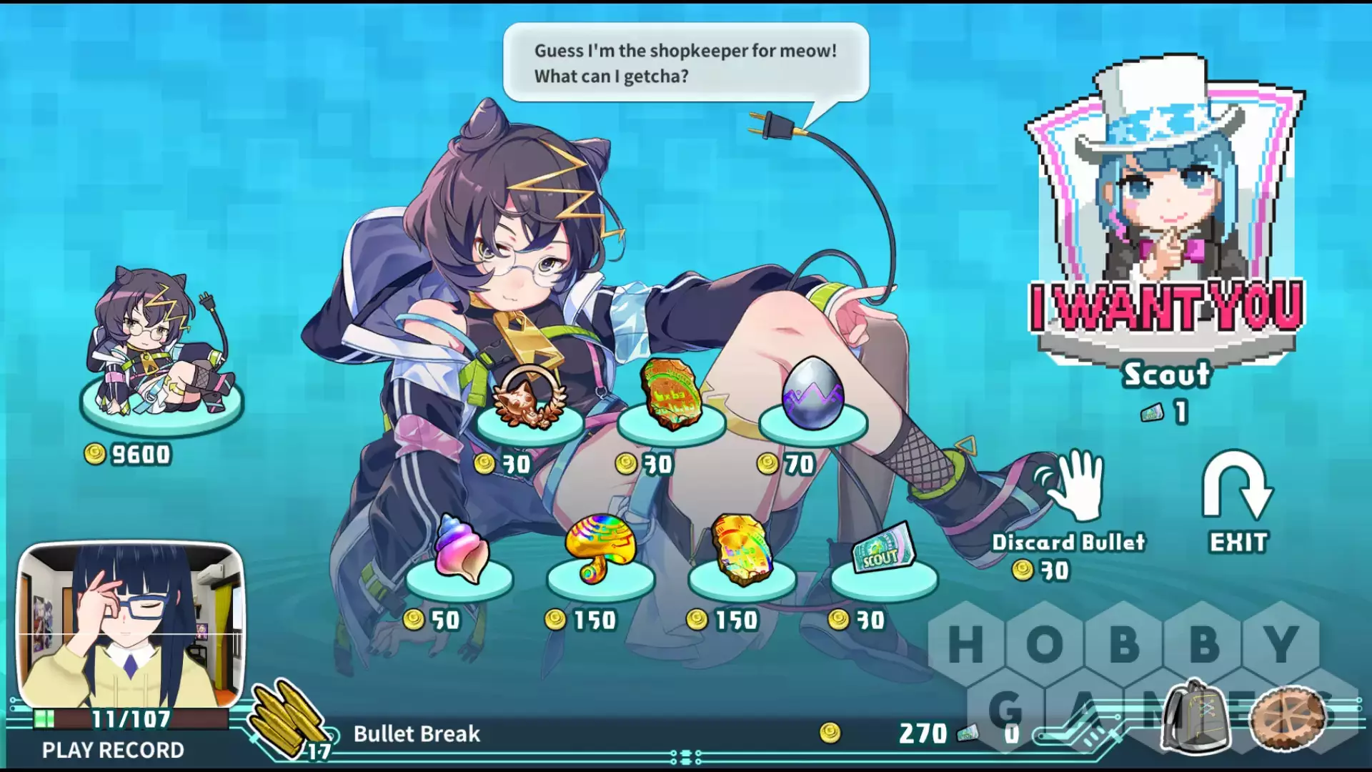 Super Bullet Break is inspired by classic gacha games but takes the microtransactions out of it! Purchase items in the shop with in-game currency, receive them as a battle reward, or find them in the treasure chests scattered around the map to improve your deck! Super Bullet Break is all about strategy after all … and a little bit of luck. With your character determining your starting deck, it's now up to you to take the risk to swap cartridges, find items, and scout Bullets - a deck builder with a twist, if you will. Improve your strategy with every replay!