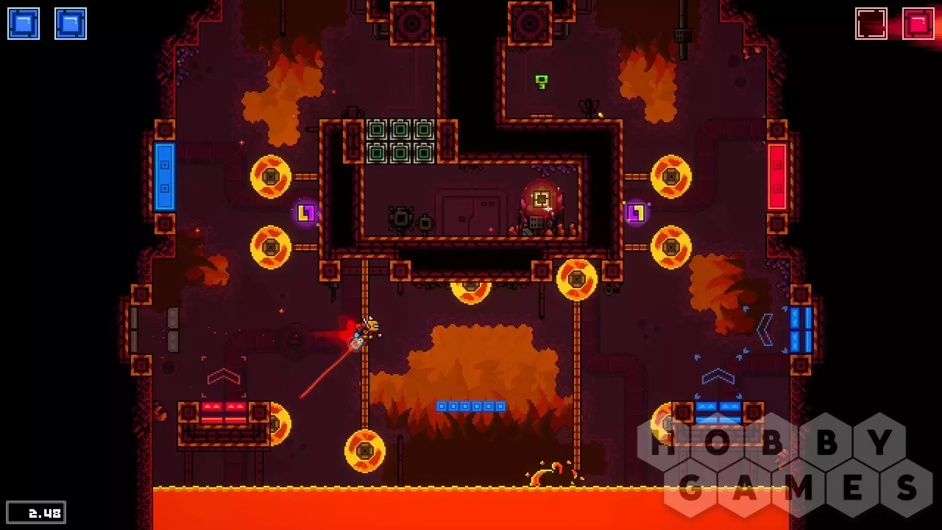 Armed with the power to control both positive (red) and negative (blue) magnetic polarities, Magbot must navigate through a myriad of challenging platforming environments to save his home planet of MagTek.