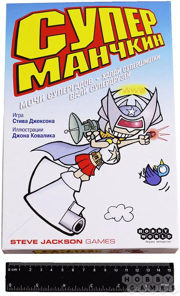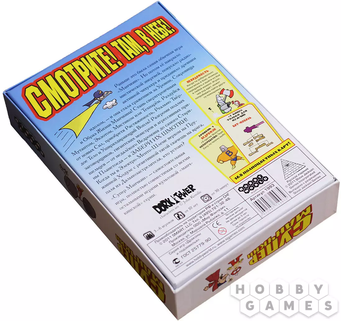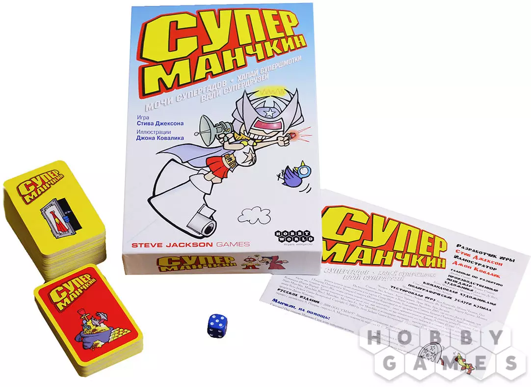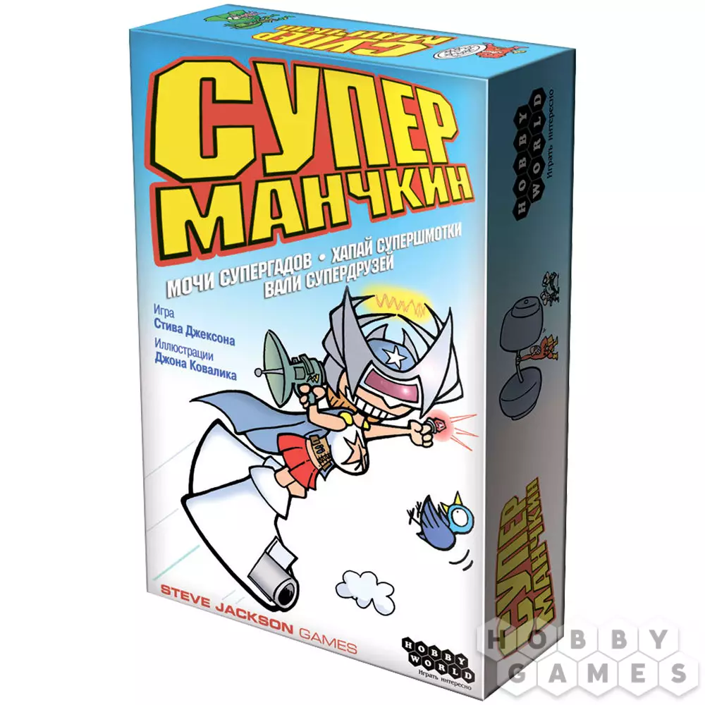 Смотрите! Над улицами Манчкин-Сити летит поборник истины, справедливости и нескончаемых бонусов, он успевает прищучить пару суперзлодеев, подставить членов своей команды и отобрать у них геройские гаджеты! Это же "Суперманчкин"!