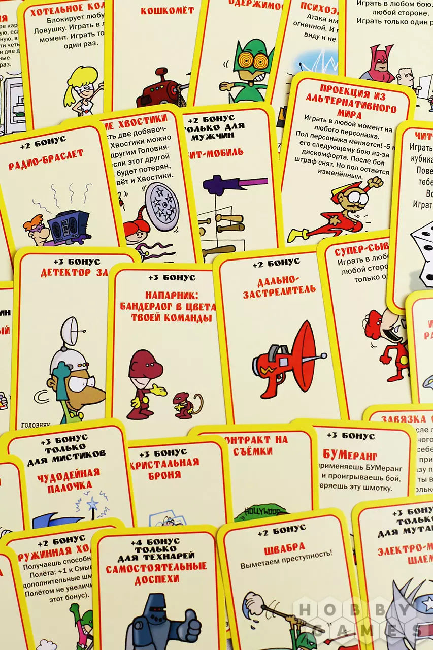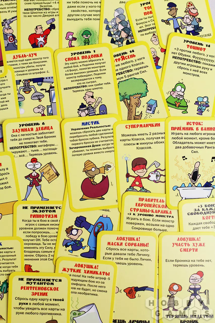 Прежде всего, это целая кипа новых монстров (вас точно порадует Взрывнюк), шмоток (спешите опробовать Швабру и вымести ей всю преступность из города) и событий. Помимо этого вас ждут 4 новых класса: Мистик, управляющий кубиком и собственной смертью; Экзот, находящий силы в монстрах; Мутант, управляющий Силами и Технарь, отлично шарящий в Шмотках. Также в игре появляются несколько новых типов карт – прежде всего это карты Силы, которые дают Вам уникальные способности, но чтобы ими пользоваться, нужно накопить достаточности мощности, а также карты штаб-квартир. В игре нет рас, но Героям они и не нужны, не так ли?