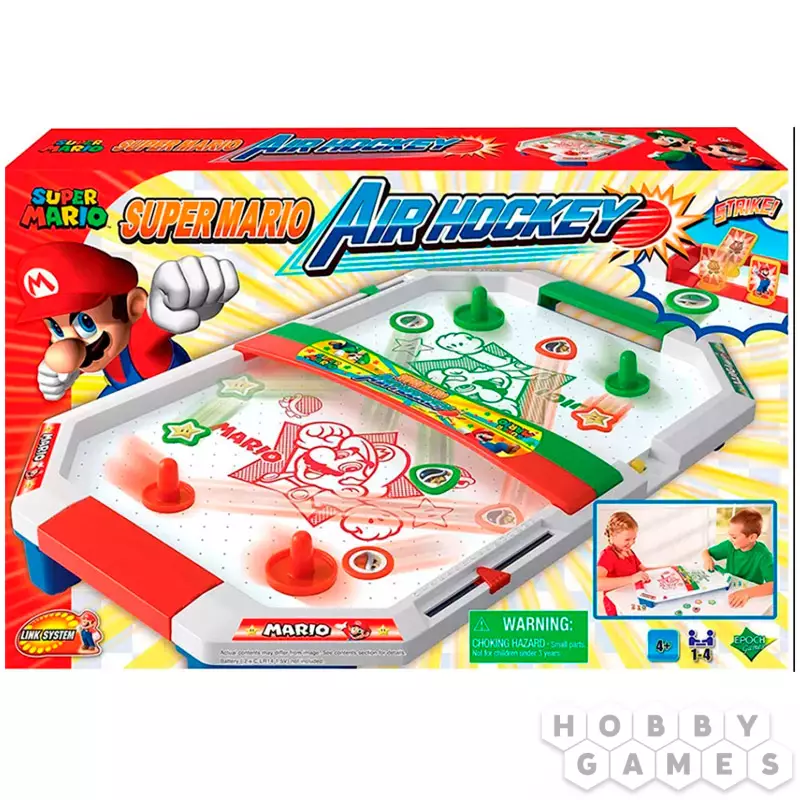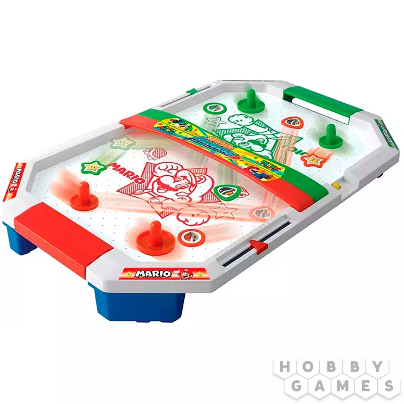 SUPER MARIO. Air Hockey – это всеми любимый аэрохоккей с персонажами легендарной игры Super Mario. Два игрока смогут посоревноваться за звание лучшего хоккеиста. А победит тот, кто сможет забить наибольшее количество шайб в ворота соперника. Игровое поле выполнено в фирменном дизайне Super Mario. Она определённо придётся по душе всем фанатам приключений итальянского водопроводчика, а я ещё любителям настольного хоккея. Наклейте на шайбы стикеры и наклейки с изображением любимых персонажей и вперёд – к победе!