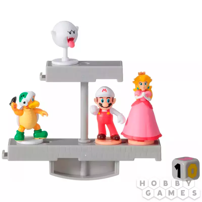Простому итальянскому водопроводчику Марио предстояло пересечь Грибное Королевство и спасти прекрасную принцессу Пич. Преодолев немало препятствий, он наконец оказался у врат замка. Проникнув внутрь, Марио наконец вызволил принцессу. Но теперь дело осталось за малым: подняться на платформе и выбраться на свободу. Игрокам предстоит подбрасывать игральные кости и по числу выпавших очков определять, сколько фигурок поместить на платформу. Ваша задача – сделать так, чтобы ни одна фигурка не упала с неё. Тот, чей персонаж сорвётся вниз, окажется проигравшим. Вам нужно приложить немало усилий, чтобы выйти победителем в этой увлекательной и непростой игре!