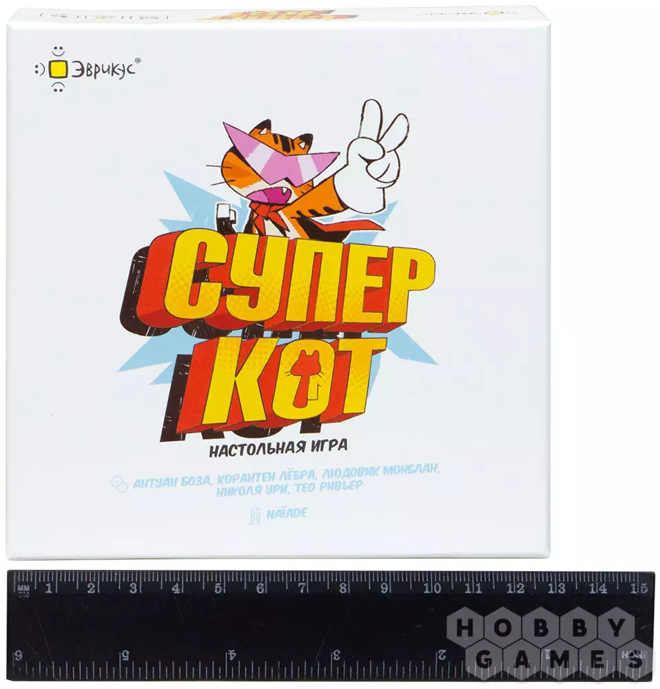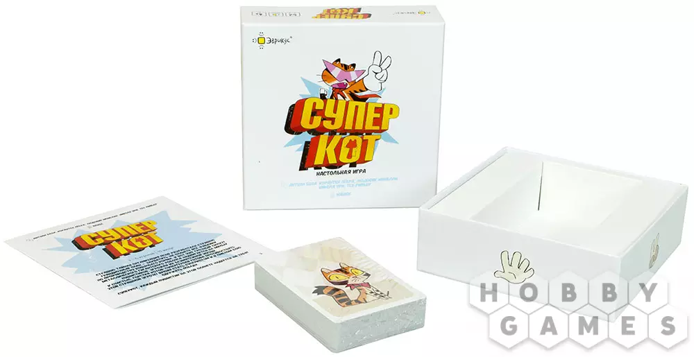 В настольной игре "Суперкот" вы играете за одну из враждующих сторон – Суперкота или Робопса. Игровой процесс состоит из двух эпизодов. В первом эпизоде каждый из игроков пытается перевоплотить пять своих обычных котов в супергероев. Для этого участники громко повторяют "Су-пер-кот" и одновременно показывают пальцами число от ноля до пяти. Тот, кто показал самое большое число, которое, к тому же, не повторяется с кем-то из игроков, выигрывает в этом раунде и перевоплощает одного или даже двух своих котов, в зависимости от показанного числа. Как только у одного из участников появляется пять супергероев, он становится мощным Суперкотом и готов лицом к лицу встретиться с гигантским Робопсом, на чью сторону встают все остальные игроки.
