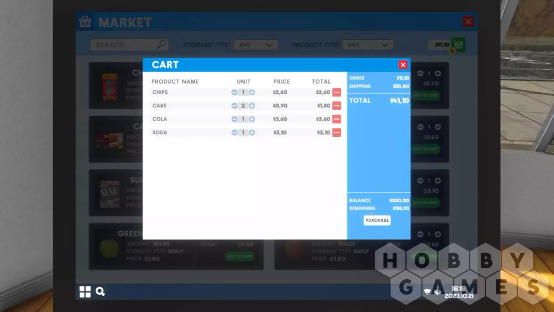 Заказывайте товары на складе с помощью внутриигрового компьютера. Распаковывайте товары, расставляйте их на полках, в холодильниках и морозильных камерах.