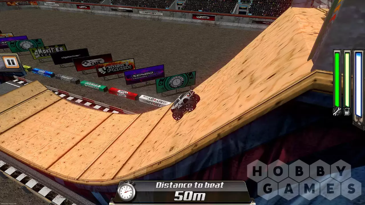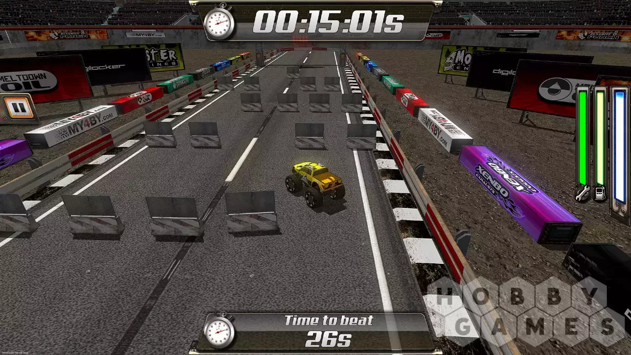 - Достигая новых высот в своей гоночной карьере, вы будете открывать бонусные соревнования: трассу с препятствиями, прыжки в длину и гонки на время.