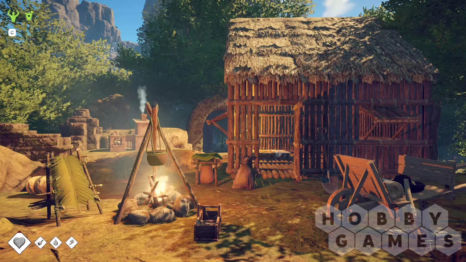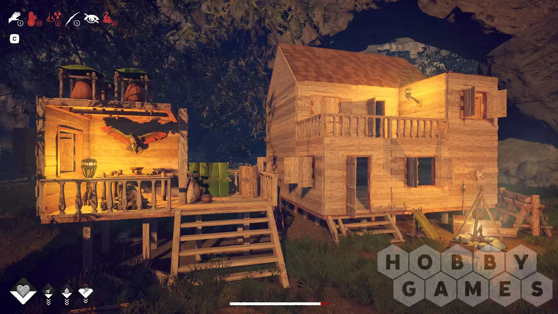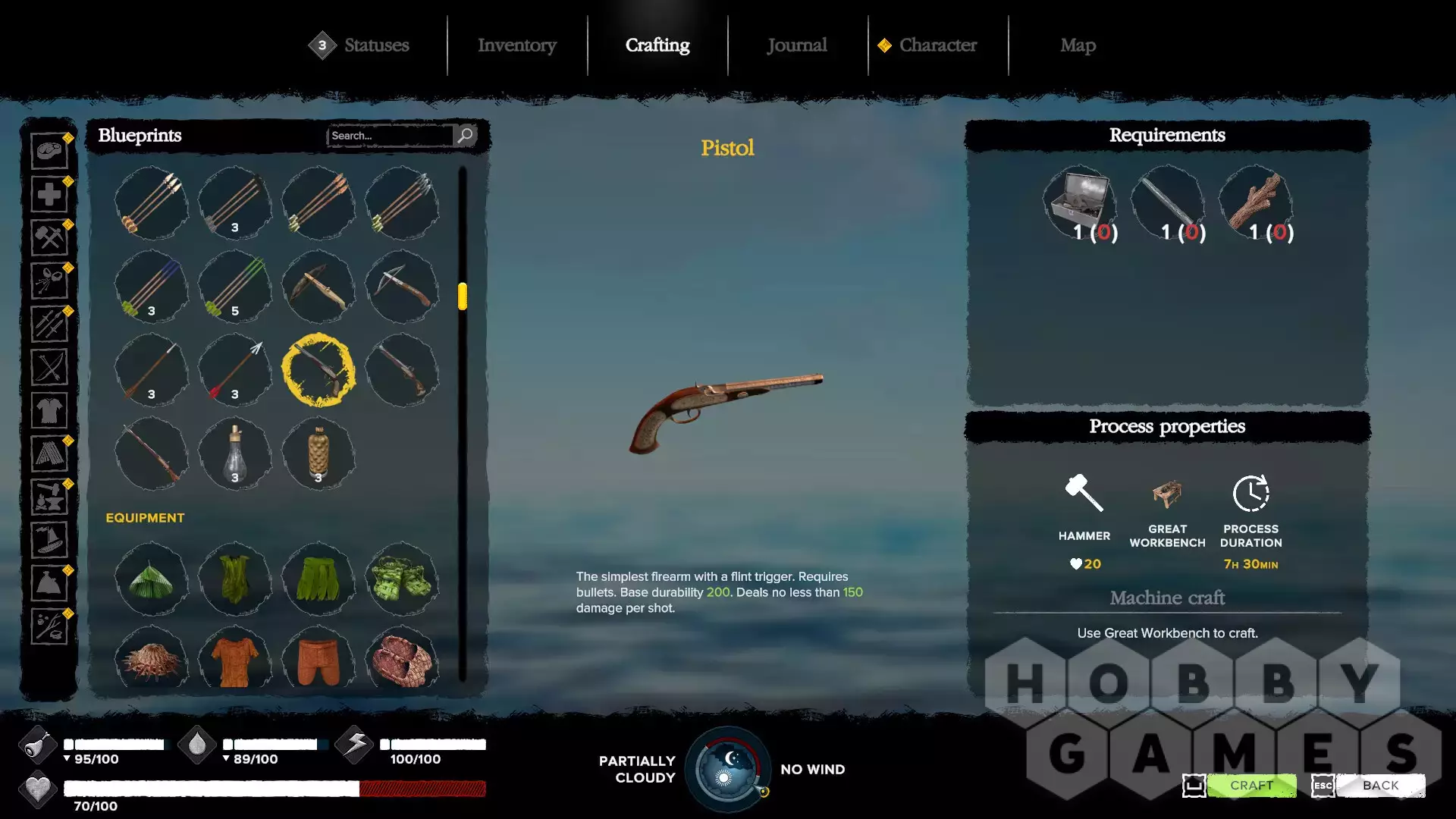 Потом и кровью превратите свой скромный лагерь из простой палатки в продуманную до мелочей базу с верстаками для инструментов, полями, водосборником и кузнечными приспособлениями... Вам доступны сотни предметов для изготовления, от простых деревянных инструментов до продвинутых мушкетов и доспехов.