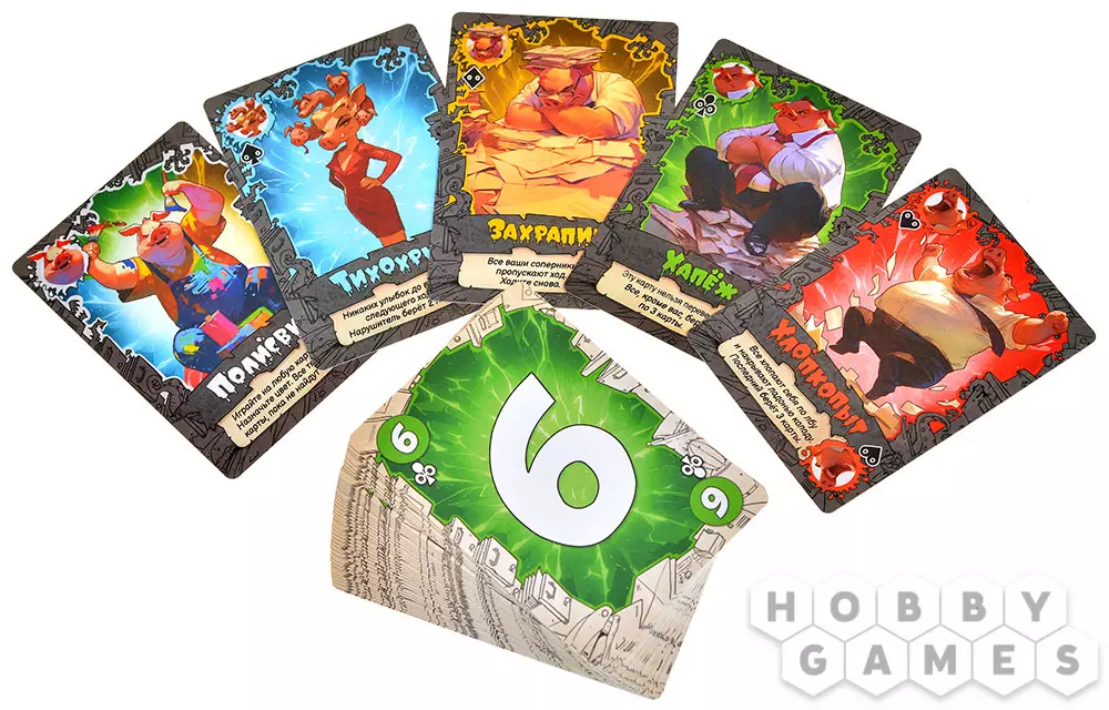 Перевод – на карты "Захрапин" и светлый "Хапёж" можно ответить такой же картой, переадресовав эффект следующему игроку. Цепочка переводов может продолжаться!