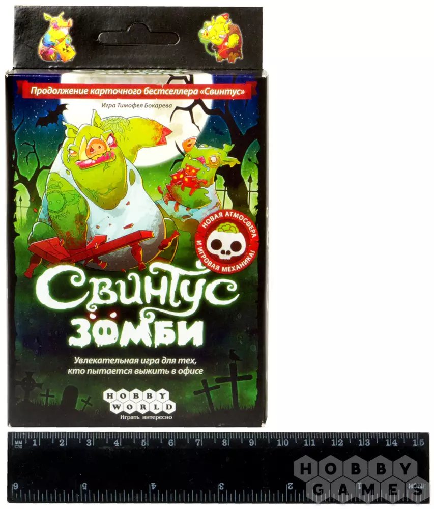 Павлюк21.12.2019 10:53Такая же веселая как и оригинальный Свинтус!) Правда с вакцинами чуть сложнее играть, так что мои родители не хотят разбираться и морочиться (обоим 55+) и выбирают классическую версию, а вот мы с друзьями только рады этому новому правилу, ибо бой уже идет серьезный, чтоб скинуть эти вирусы)) Кстати, какое же великолепное оформление! Обожаю зомби тематику, как же органично хрюшки вписались в нее) И цифровые карты и карты действий совершенно в другом сэттинге) Люблю эту версию!