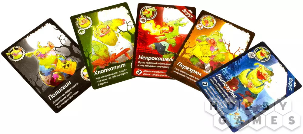 Денисова03.04.2022 09:15Классная задумка с вирусами. Более разнообразная и расширенная по сравнению с обычным свинтусом. По началу с вирусами не играли, но потом добавили их в основную колоду и с того момента горя не знали — теперь играем только ними. Очень интересно, занимательно и реально стало больше возможностей «подложить свинью товарищу».