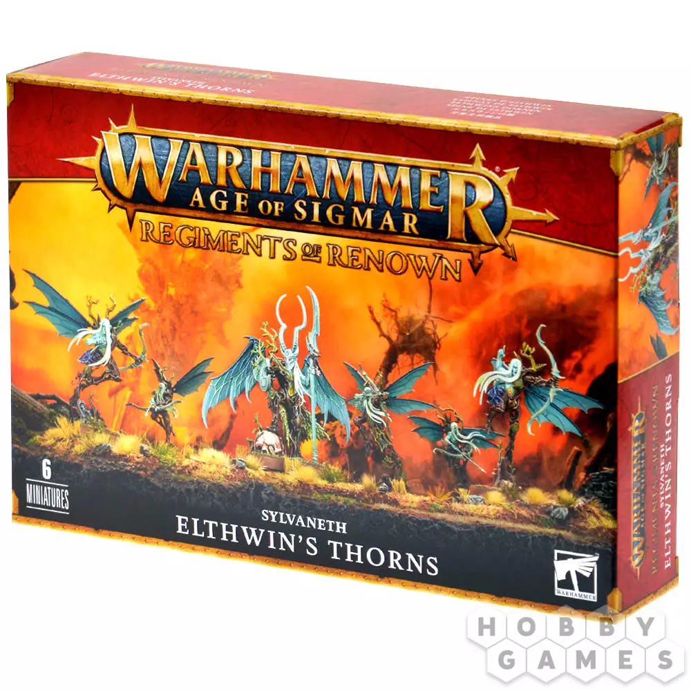 В данном наборе вы найдёте все компоненты, необходимые для сборки Шипов Элтвин (Elthwin's Thorns), отряда формата Regiment of Renown для игры Warhammer Age of Sigmar. Эти терзаемые безумием Сильванеты парят над головами врагов, обрушивая на них стрелы. Стоит наконечникам вонзиться в тело врага, как его буквально начинает поедать изнутри – такова жуткая мощь Элтвин и её Госсамидов!