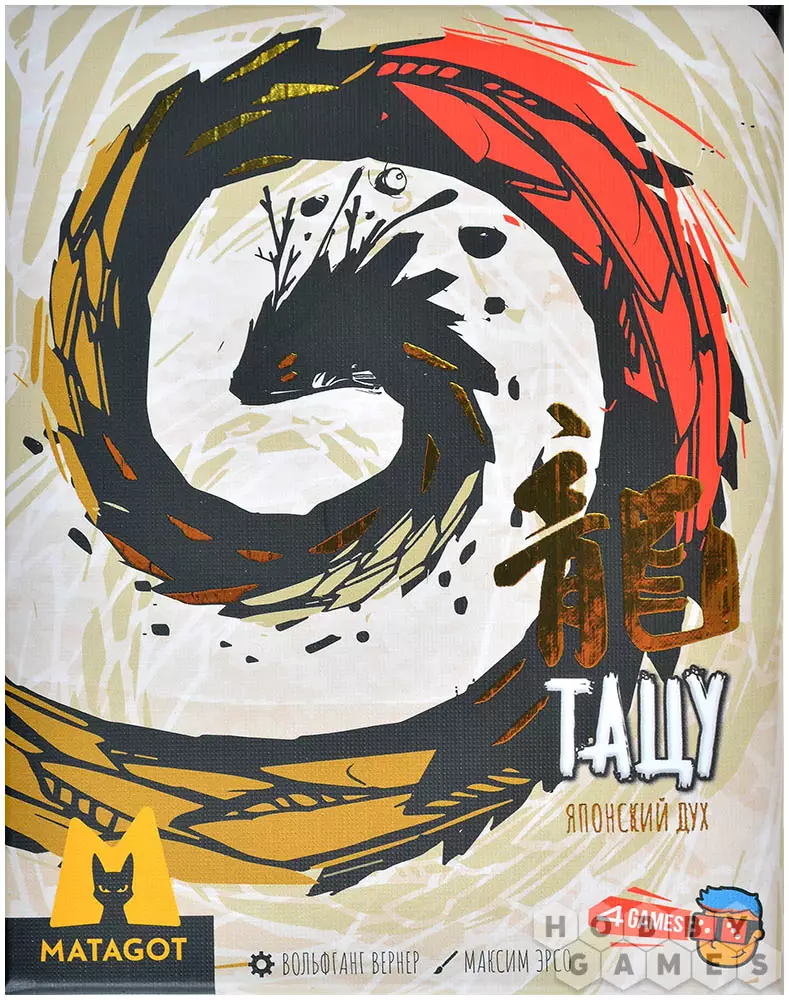 "Тацу" – это карточная игра со взятками. Её цель – сделать так, чтобы ваша команда набрала 500 победных очков. Для этого вы будете разыгрывать карты духов, которые отличаются друг от друга по силе, и комбинировать их с картами слияния и множителя, чтобы ещё сильнее приблизиться к победе. Сможете ли вы принести своему клану славу, которую он заслуживает?