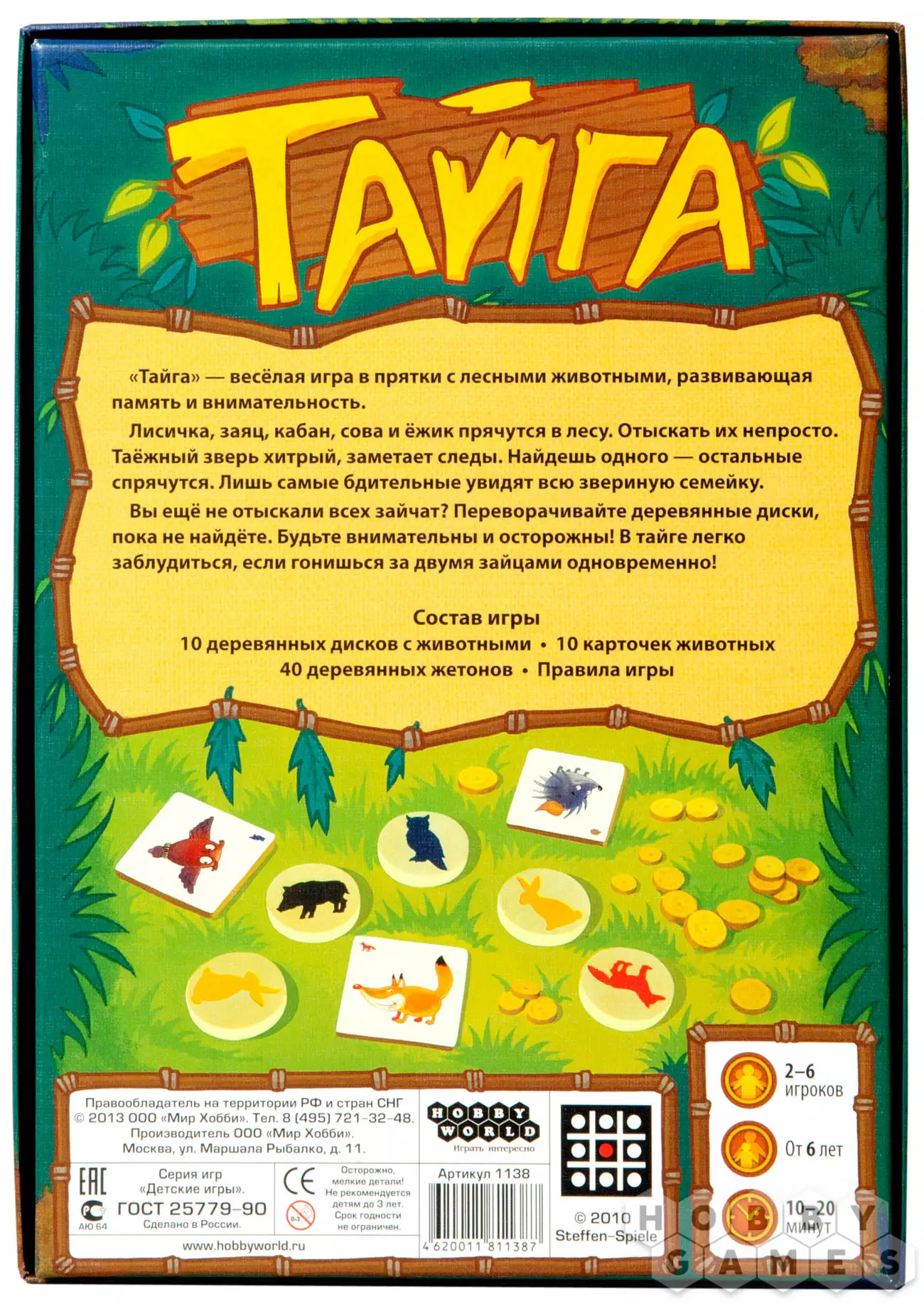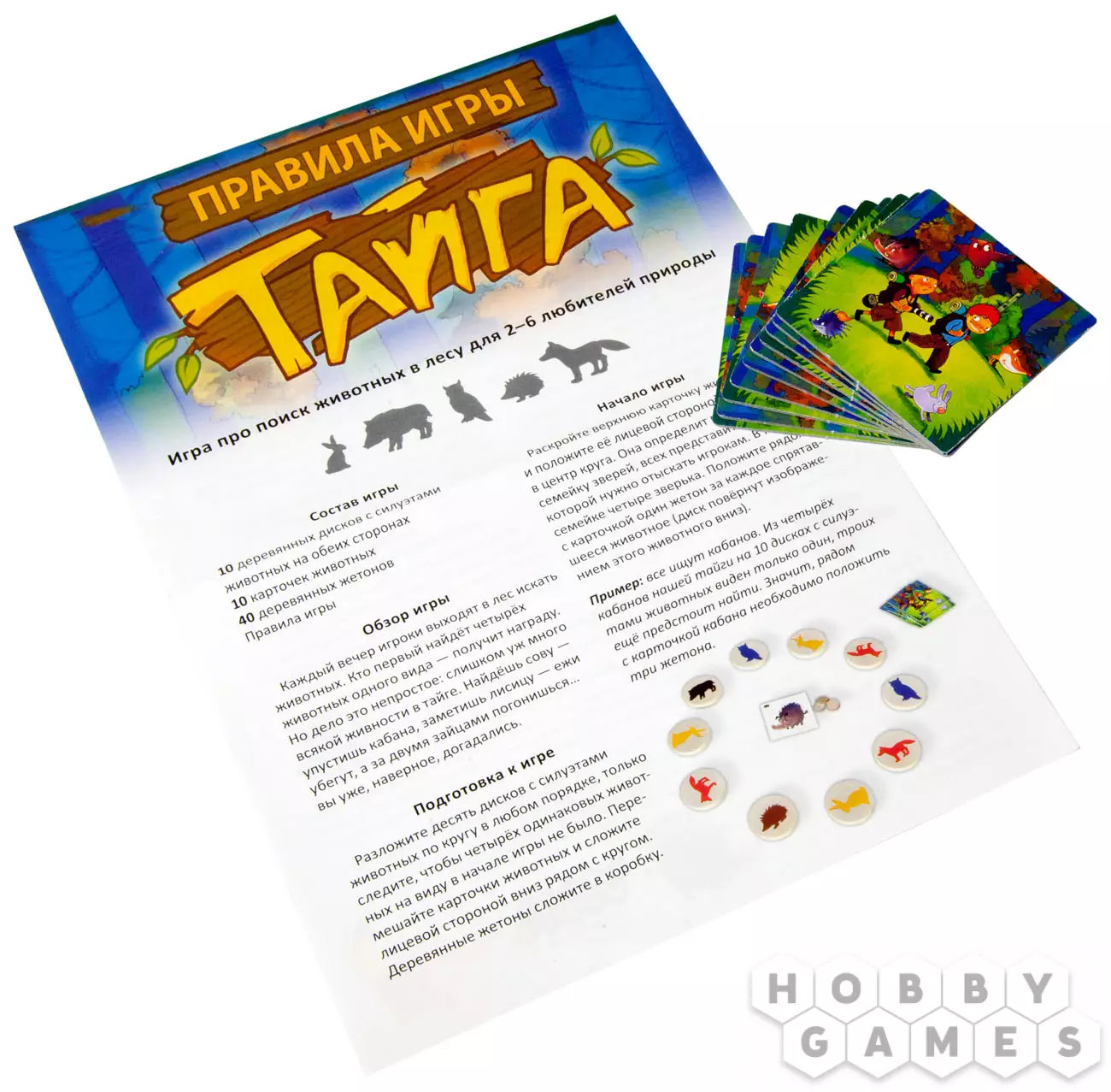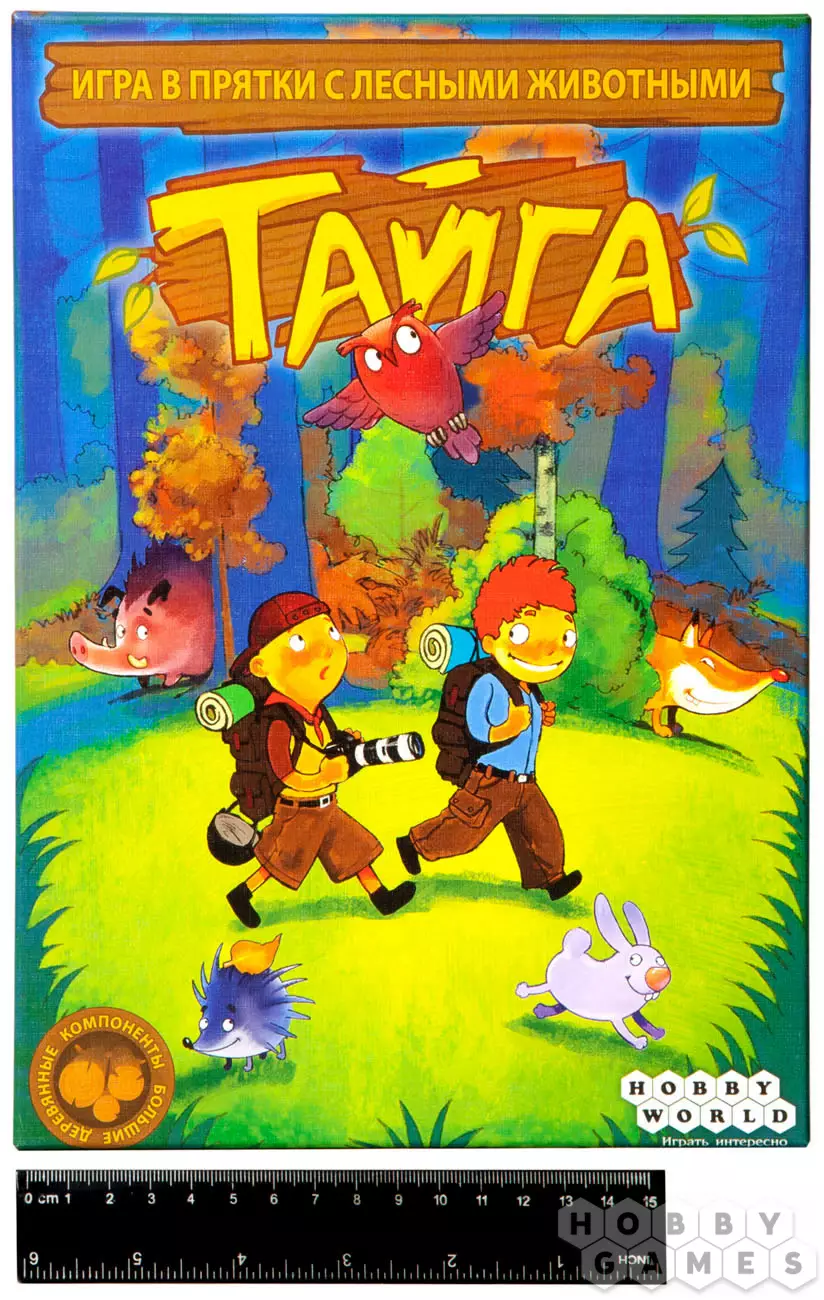 Марина09.06.2015 11:25Привлекла зеленая коробка со смешной картинкой бредущих туристов.Приятно удивили качеством крупные деревянные детали и зеленая атмосфера внутри. Игра очень понравилась.От увлекательного поиска зверей не могли оторваться!Но ощущение тайги на самом столе в игровом процессе не чувствуется,когда перебираешь белые карточки и белые деревянные диски.Зеленого на игровом поле ничего нет,кроме отложенной приятно оформленной коробки,не участвующей в игре.А ведь все-таки зверей в тайге ищем! Оформление можно было сделать лучше :вместо маленьких кругляков подошли бы фигурки елочек,а квадратные картонные тайлы можно было бы изобразить в виде бревнышек или пеньков.Сделать игру красочней это возможно!Пришлось взять из другой игры елки,зеленое поле и создать атмосферу леса.Вот тогда игра пошла на ура! Но даже при данном оформлении игра забавная, веселая,легкая.Советуем поискать зверей и детям и взрослым.Придумано хорошо ,но не совсем доведено до совершенства.А в целом ,производитель молодец!
