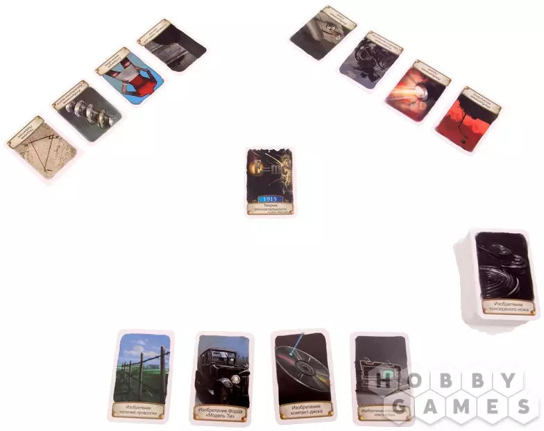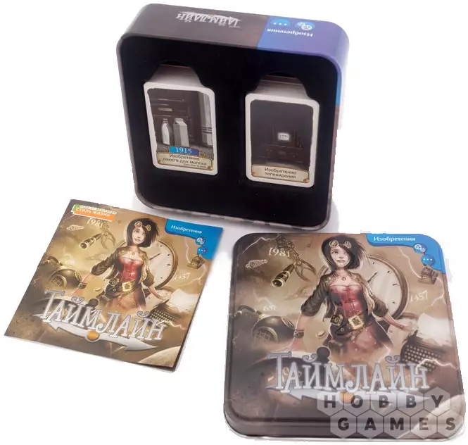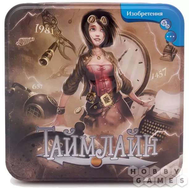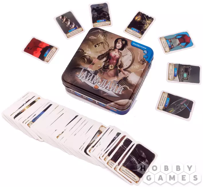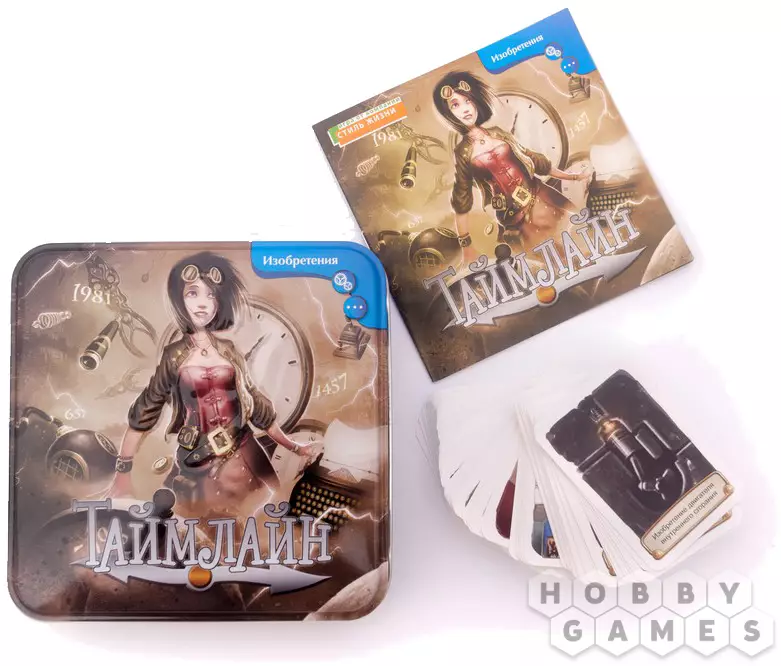 "Таймлайн. Изобретения" – увлекательная карточная игра-викторина для компании от двух до восьми человек. Игрокам предстоит выстроить временную линию-шкалу из карточек событий. Карты в игре двухсторонние. С одной стороны карты вы увидите название события, будь то великое открытие или, например, просто полезное изобретение. А с другой стороны изображена та же самая картинка, но только уже с годом, в который состоялось это событие. В свой ход игрок выкладывает одну из своих карт на временную ось. Если выложенная карта подходит по году к остальным картам, то ход передаётся далее по часовой стрелке. Если игрок ошибся, то в качестве штрафа он берёт дополнительную карту, а неправильно выложенная карта сбрасывается. Победителем и знатоком изобретений объявляется тот, кто раньше остальных избавится от всех своих карт, правильным образом добавляя их в линию событий.