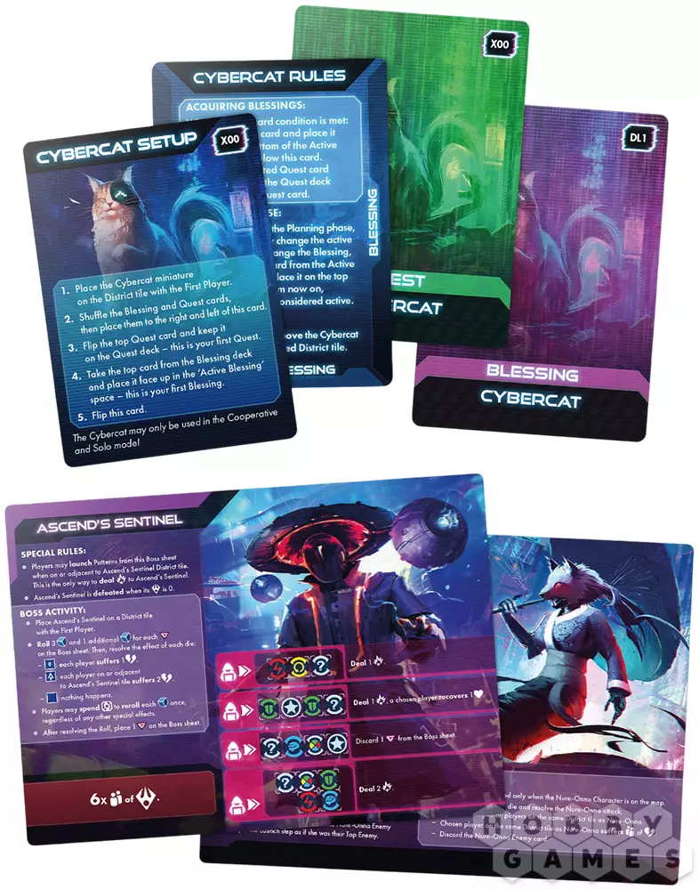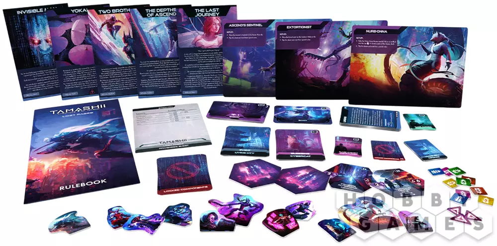 Tamashii: Chronicle of Ascend – киберпанковая приключенческая настольная игра, в которой вы будете исследовать модульный город, открывать локации, сражаться с врагами и собирать информацию, необходимую для победы. Параллельно вы действуете в виртуальной сети, где правильная комбинация ходов способна принести решающее преимущество. Сценарии игры меняют правила: вы можете объединиться с другими игроками, действовать против них или заключать шаткие союзы. Здесь нет постоянных сторон – только цели и пути к ним.