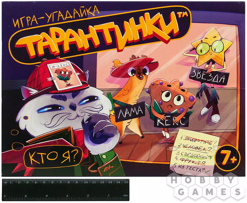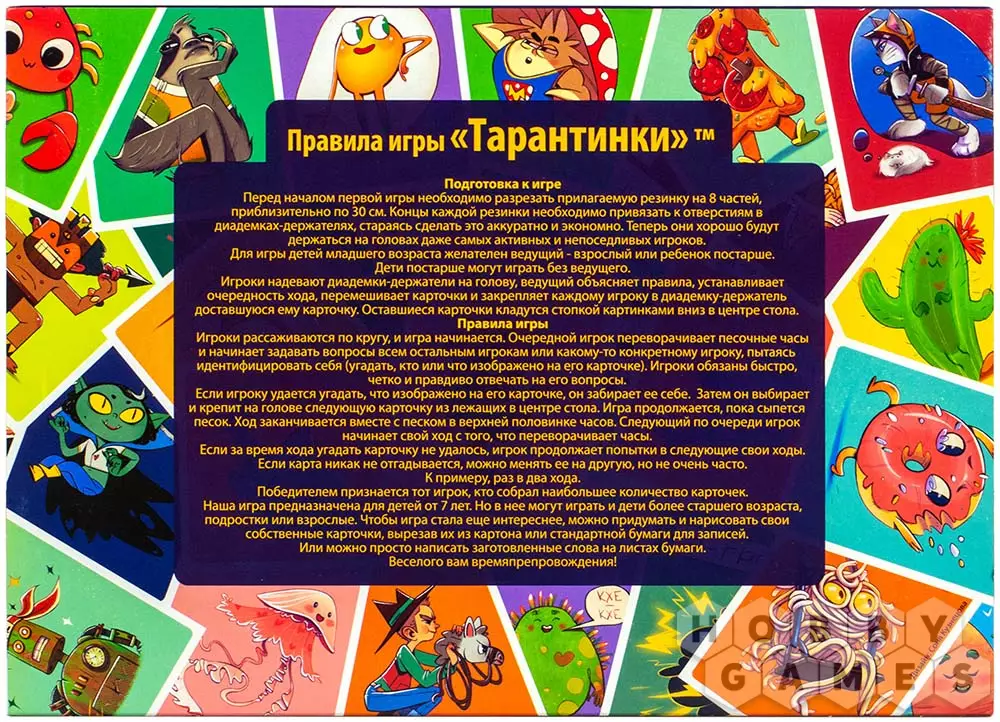 Все вокруг знают, кто ты на самом деле, и только ты один теряешься в догадках! Знакомая ситуация? Если нет, тогда рекомендуем открыть коробку и скорее начать озорную и шутливую игру "Тарантинки", где хорошее настроение и фонтан эмоций украсят лица всех участников. Эта весёлая настолка станет незаменимым атрибутом досуга шумных компаний друзей и семей. Она отлично развивает скорость мышления, смекалку, фантазию и расширяет словарный запас.