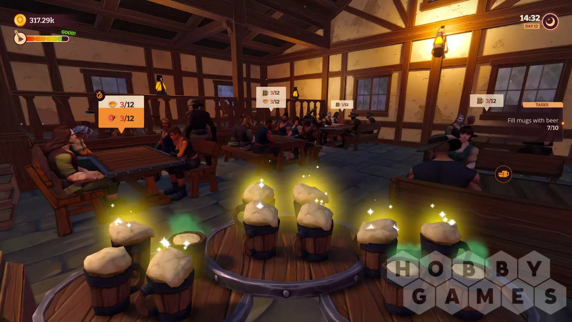 Быстрое и качественное обслуживание клиентов - ключ к процветанию вашей Таверны. Все посетители ожидают что их стол сразу, как по волшебству, заставится кружками пива и закусок. Они очень нетерпеливы и их легко рассердить. Вам будет постоянно не хватать времени и ресурсов. Правильный тайм - менеджмент и расстановка приоритетов становятся очень важными, когда дело доходит до поддержания посетителей в хорошем