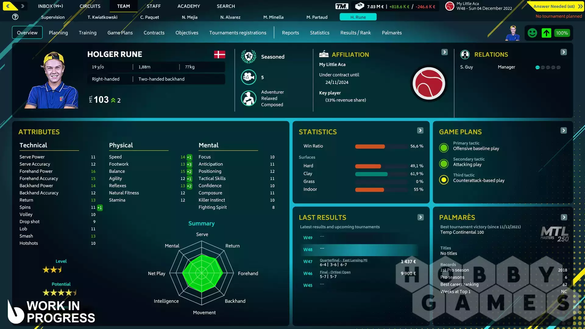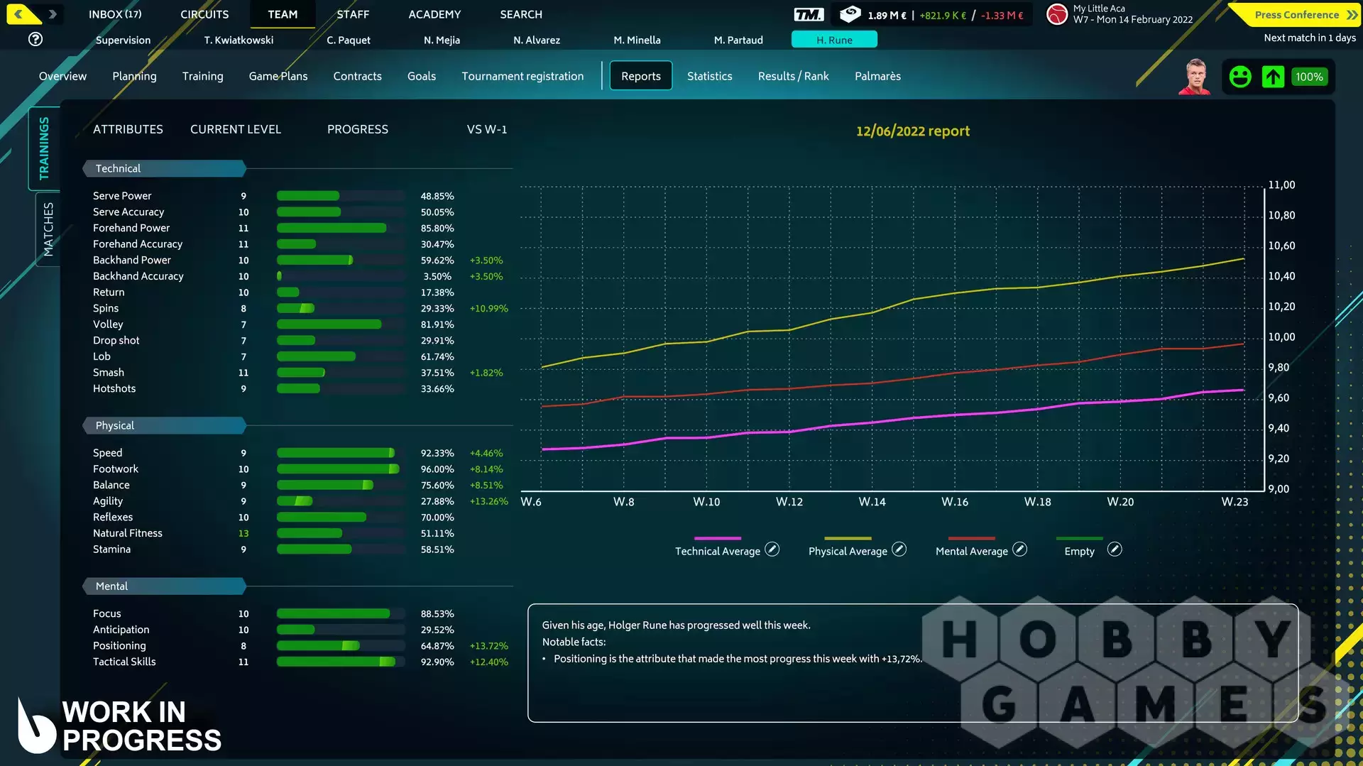 Окружите себя лучшим персоналом (тренеры, техники, специалисты по физиологии, тактике и душевному здоровью и не только) и разработайте программу тренировок, наилучшим образом соответствующую способностям ваших игроков, их ожиданиям и вашему стилю!
