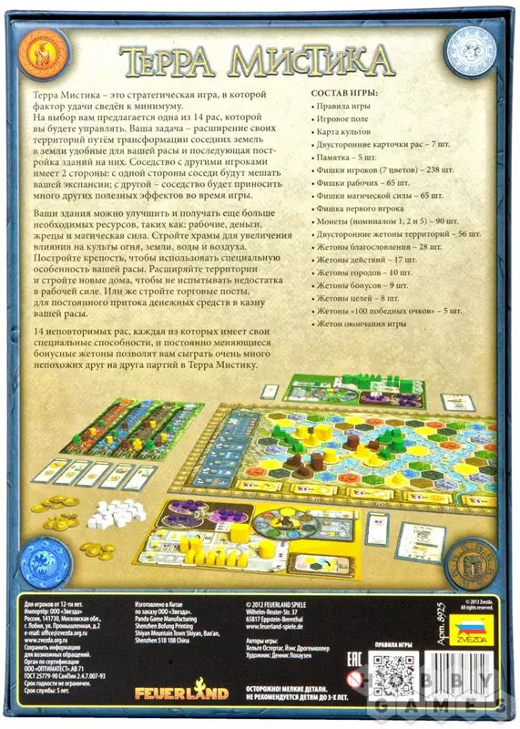 Настольная игра «Терра Мистика» — это стратегическая фэнтезийная игра, в которой каждый игрок возьмёт на себя бразды правления одной из уникальных рас, обладающих своим набором умений и особенностей. Проявив своё мастерство предводителя, вам нужно добиться захвата как можно большего количества земель, чтобы развить свой народ быстрее и эффективнее ваших конкурентов.