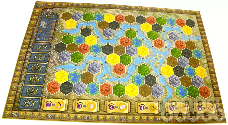 По очереди, из раунда в раунд, игроки выполняют действия, расплачиваясь за это накопленными ресурсами. Строя различные здания (только на родных землях), игроки получают бонусы: жилища позволяют нанимать больше работников, торговые дома — приносят деньги, крепости — открывают вам специальные способности, храмы обучают жрецов. При этом нельзя забывать про улучшение построек, особенно в условиях земельного дефицита!. Жилые дома со временем превращаются в торговые посты, а пост можно развить в крепость или храм, который, возможно, когда-нибудь станет святилищем