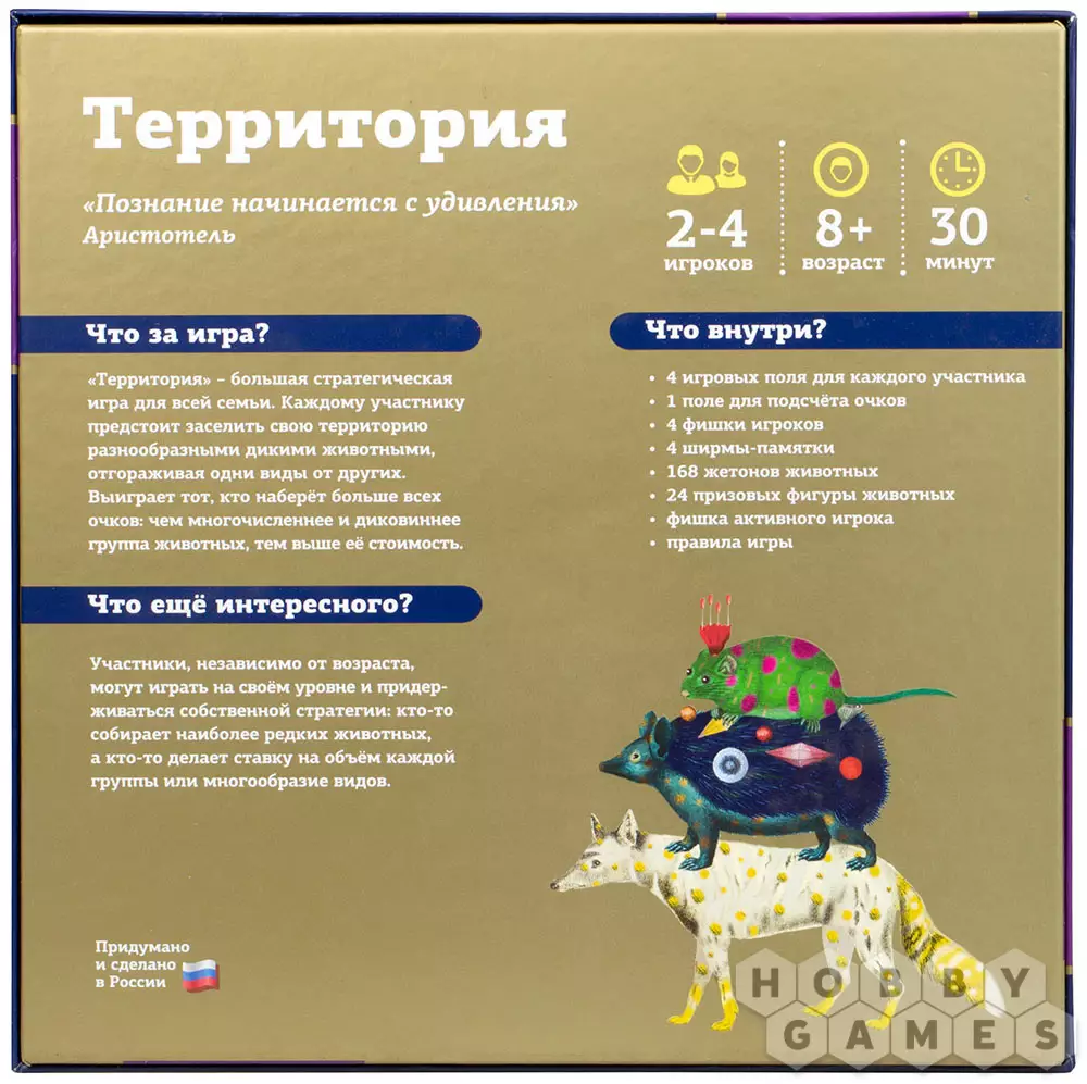 Елена19.05.2023 13:22Неспешная игра со стратегией заполнения собственной территории. Перед покупкой ознакомились с правилами - это стало решающим в приобретении. Всё понятно, без спорных моментов и даже соответствует природным законам (если в группе всего одно животное, то это не даёт победных очков. как и в природе каждой твари должно быть по паре, чтоб продолжался круг жизни). Ну и конечно художественное оформление! Медведь в новогодней гирлянде - наш любимый)