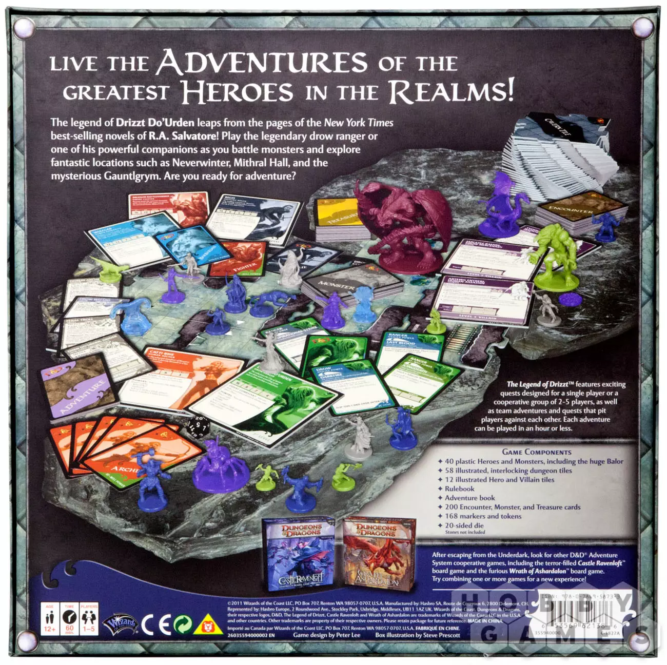 "The Legend of Drizzt/ Легенда о Дзирте" – это настольная игра во вселенной Dungeons & Dragons. В основу игры положены приключения темного эльфа по имени Дзирт До’Урден из книг Роберта Сальваторе. Какие-то игровые сценарии предполагают объединение усилий, и тогда вам и вашим друзьям приходится работать в команде для того, чтобы достичь успеха. Другие сценарии ориентированы на соперничество, и тогда вы должны превзойти других игроков для достижения победы. Каждый игрок выбирает себе героя: Дзирта До’Урдена, главу клана гномов Боевых Топоров – Бренора, верную подругу Дзирта – Кэтти-Бри, воришку-полурослика по имени Реджис, или же великого вождя варварского племени Лося – варвара Вульфгара. Как только вы выбрали себе героя, вы отправляетесь в темное и таинственное Подземелье!