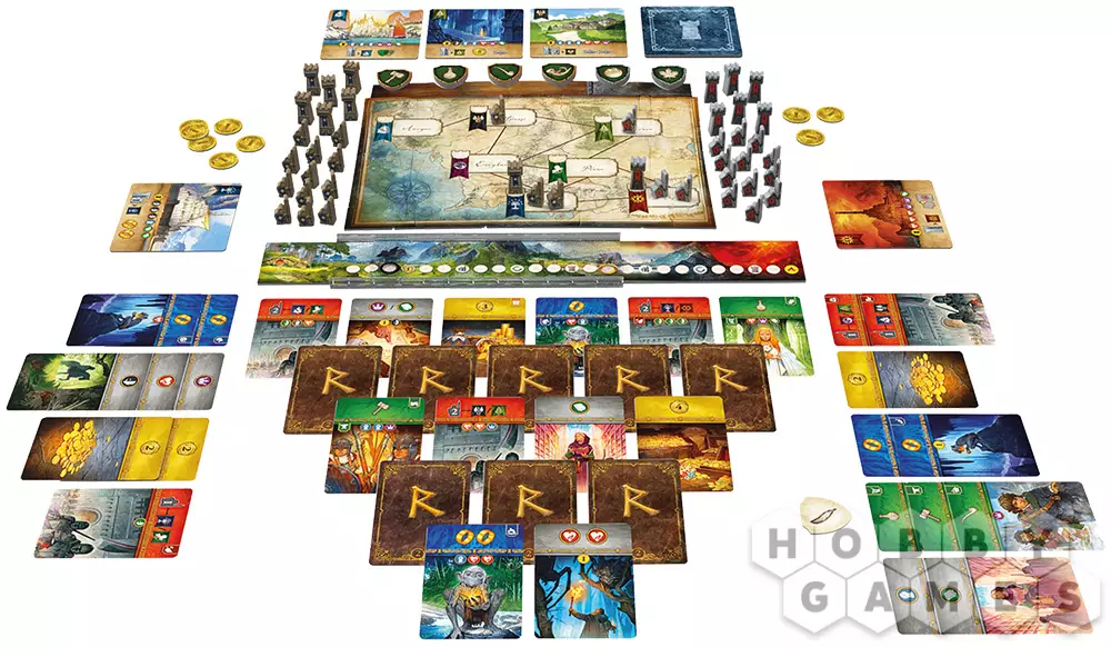 В начале каждой главы перед вами открывается новый набор карт. Карты можно брать только полностью открытые и доступные для выбора. Разыгрывая карту, вы платите её стоимость и получаете особое преимущество, а если сбрасываете – пополняете свои ресурсы монетами, которые пригодятся в будущем. Плитки достопримечательностей добавляют ещё больше тактических возможностей: купив их, вы укрепляете свои позиции, размещая крепости и активируя уникальные эффекты для регионов, которые контролируете.