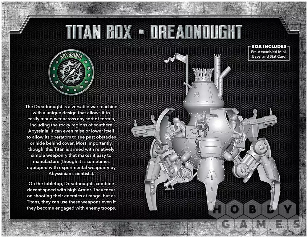 Благодаря своему функциональному трёхногому дизайну, Dreadnought является крайне мобильной и универсальной боевой машиной. Он способен передвигаться по любой местности, и даже гористости южной Abyssinia для него не проблема. При необходимости он может изменять собственную высоту – это позволяет управляющим им операторам заранее заметить и обойти препятствие.