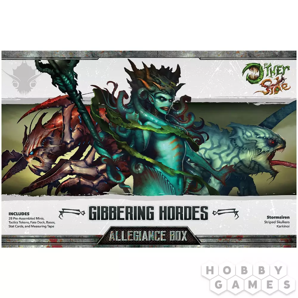The Gibbering Hordes – древние обитатели Malifaux времён Tyrants. Избрав неправильную сторону в конфликтах прошлого, они оказались на дне океана, где на протяжении столетий приспосабливались к новому образу жизни. Их тела обрели новую форму, а память о прошедших испытаниях притупилась. Порталы, внезапно возникшие в океане, перенесли их на Землю, и в некогда разумных существах проснулся дикий, страшный голод, граничащий с безумием...
