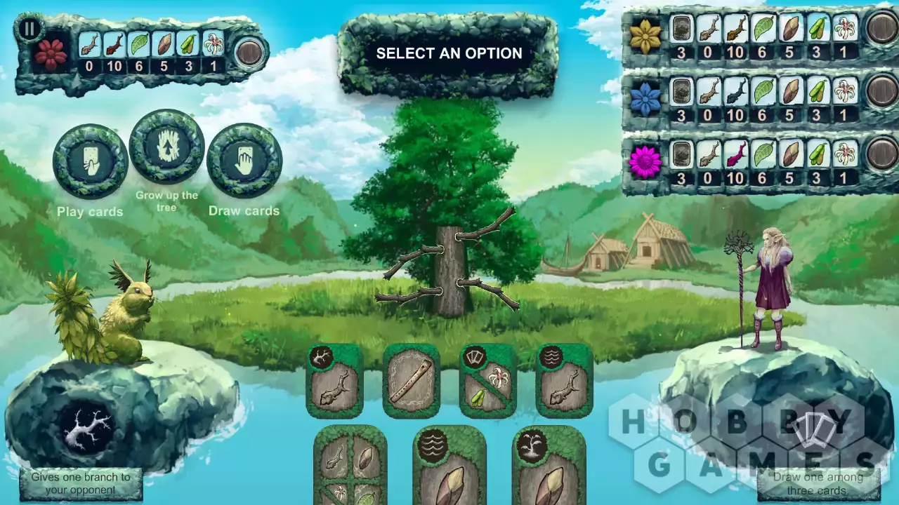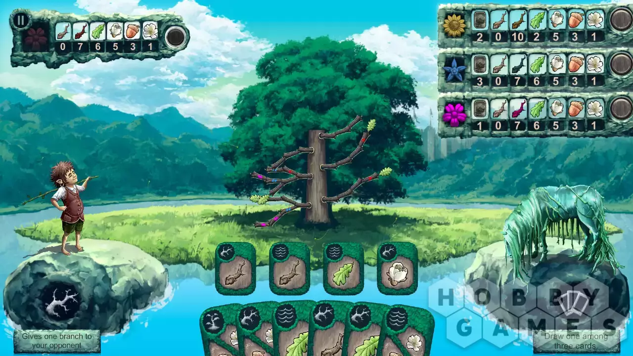 Вырастите символическое дерево в каждом из миров, вдохновленных народным фольклором (лес Броселиандре, коренные американцы, викинги, средневековая Япония). У каждого игрока есть определенный набор частей, из которых можно вырастить дерево (ветка, лист, бутон, плод и золотой цветок), и тот, кто посадит их первым, побеждает. У каждого игрока есть карты и духи-хранители, которые помогут им вырастить дерево быстрее или замедлить рост дерева своих противников. Важно использовать их вовремя и правильно!