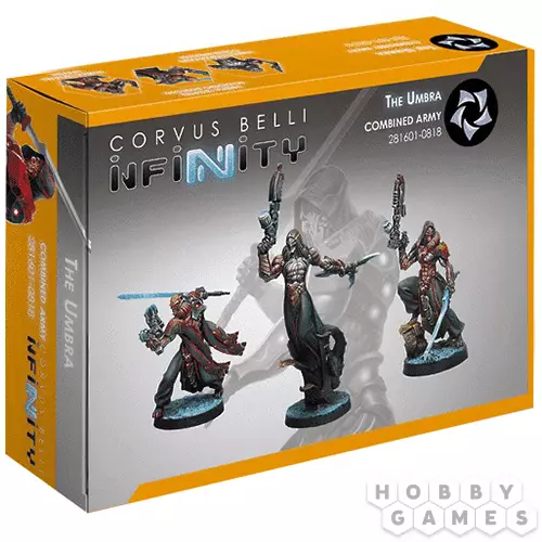 В этой коробке содержатся три миниатюры, среди которых один Umbra Legate со Spitfire, один Umbra Legate с Boarding Shotgun и один Umbra Samaritan, вооружённый Breaker Combi Rifle.
