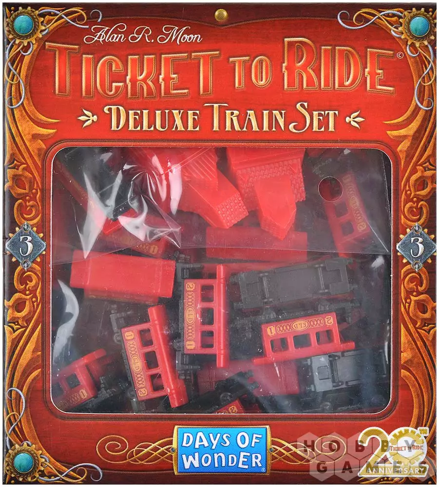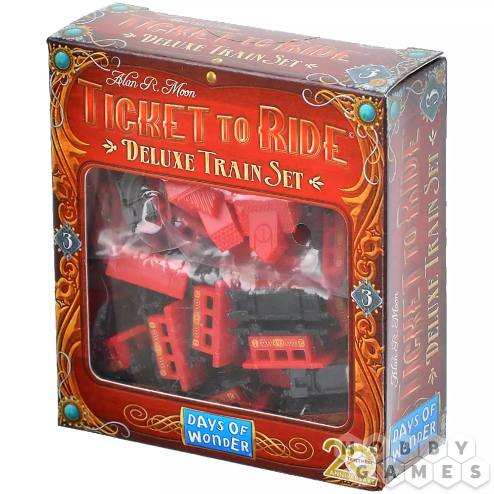 Представляем вашему вниманию делюкс-набор с тремя станциями, маркером подсчёта очков и изящными вагончиками красного цвета. Цвет был выбран неслучайно: именно с красными поездами связаны яркие детские воспоминания одного из дизайнеров серии. А ещё в набор входит небольшое пасхальное яйцо – отсылка к фильму, который нежно любят разработчики.