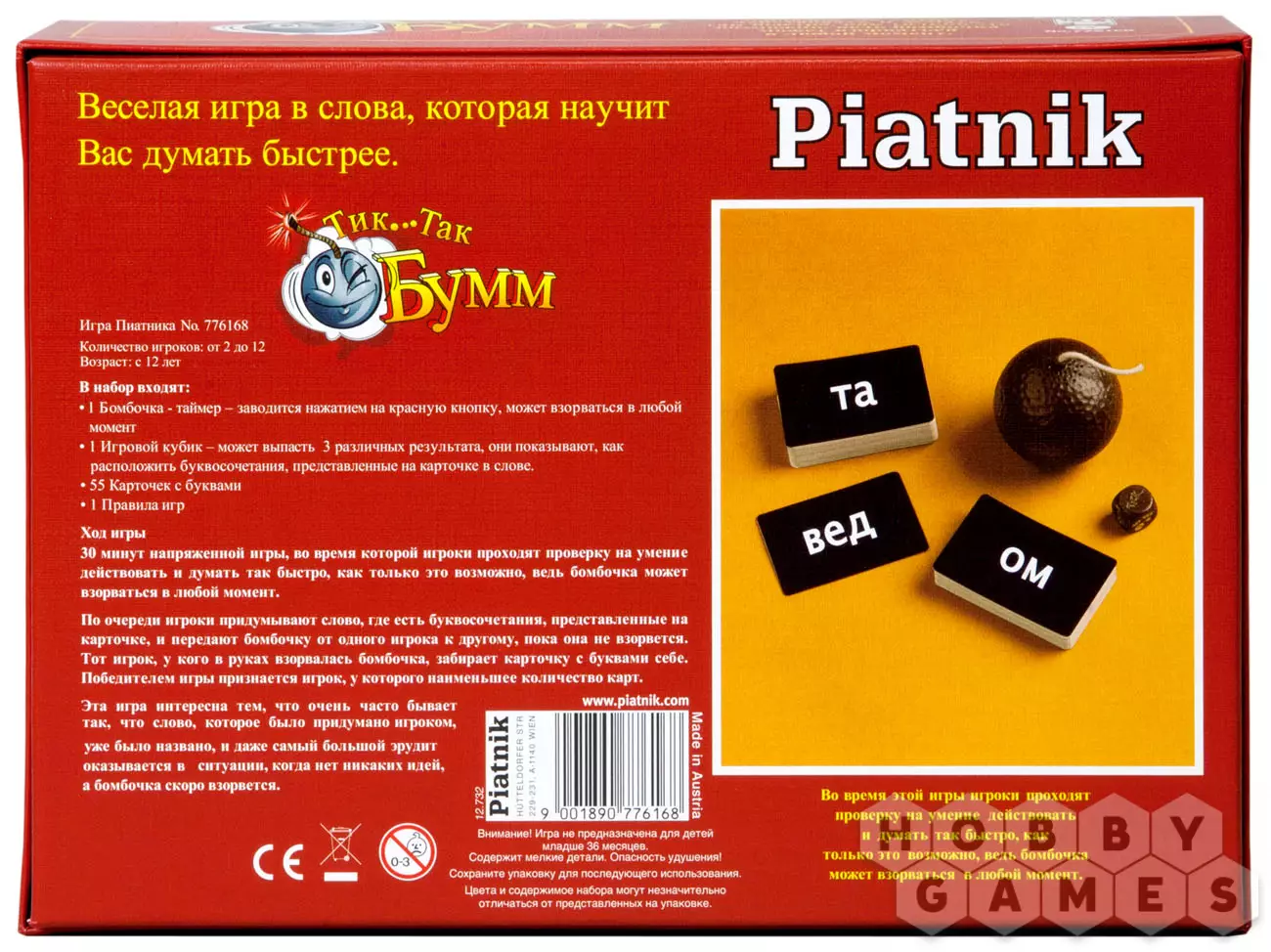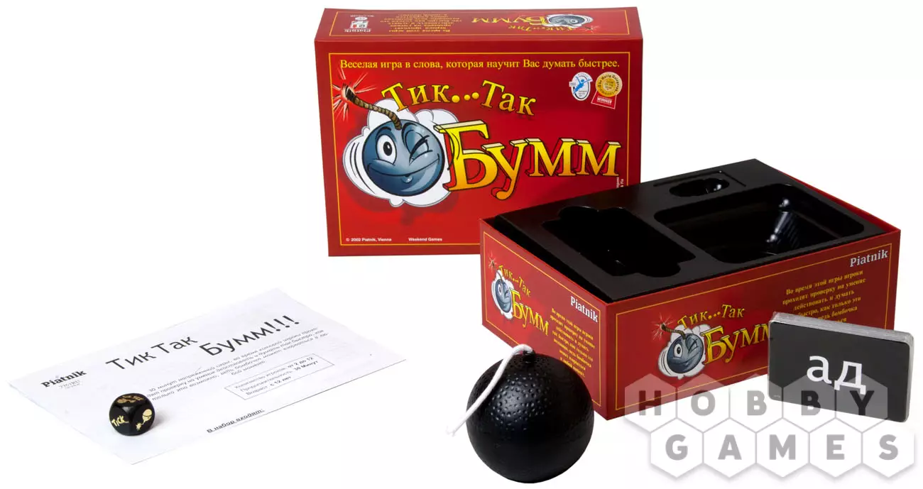 Хотите проверить свой лексикон и то, насколько быстро вы сможете вспоминать нужные слова, держа у себя в руках взведённую бомбу? Бомба, конечно, игрушечная, но от этого "Тик...Так Бумм" не становится менее интересной и захватывающей настольной игрой для детей.