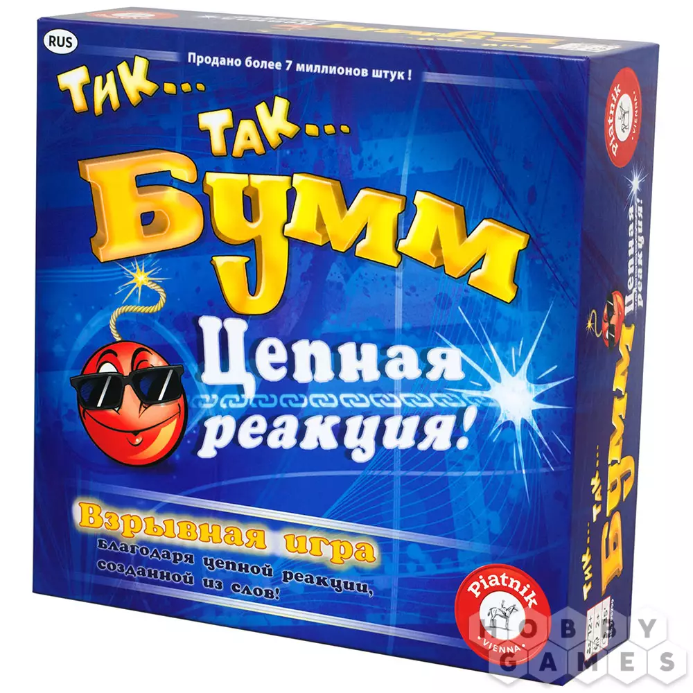 Приготовьтесь к взрывному развлечению! Настольная игра для весёлой компании "Тик Так Бумм Цепная реакция" испытает вашу реакцию и находчивость. В процессе игры вам надо будет продолжать цепочку из слов, быстро подбирая слова, которые начинаются на последнюю букву предыдущего слова.
