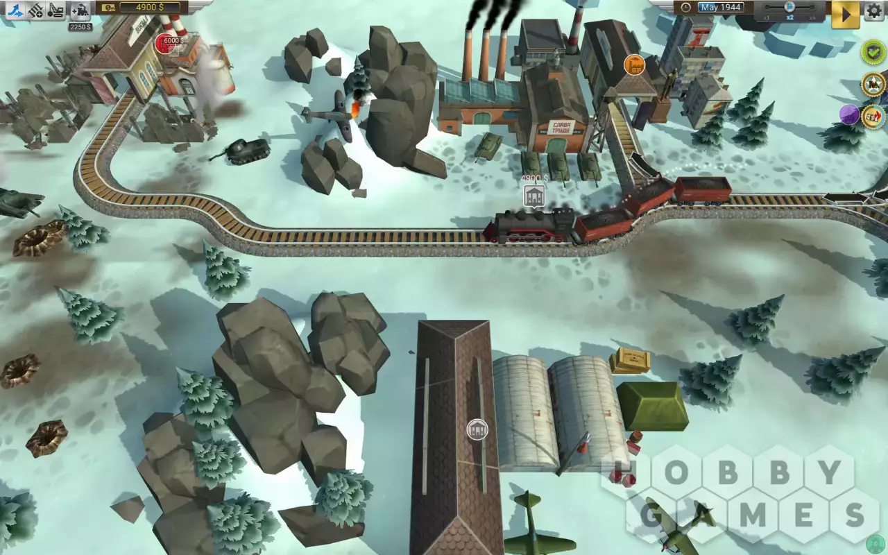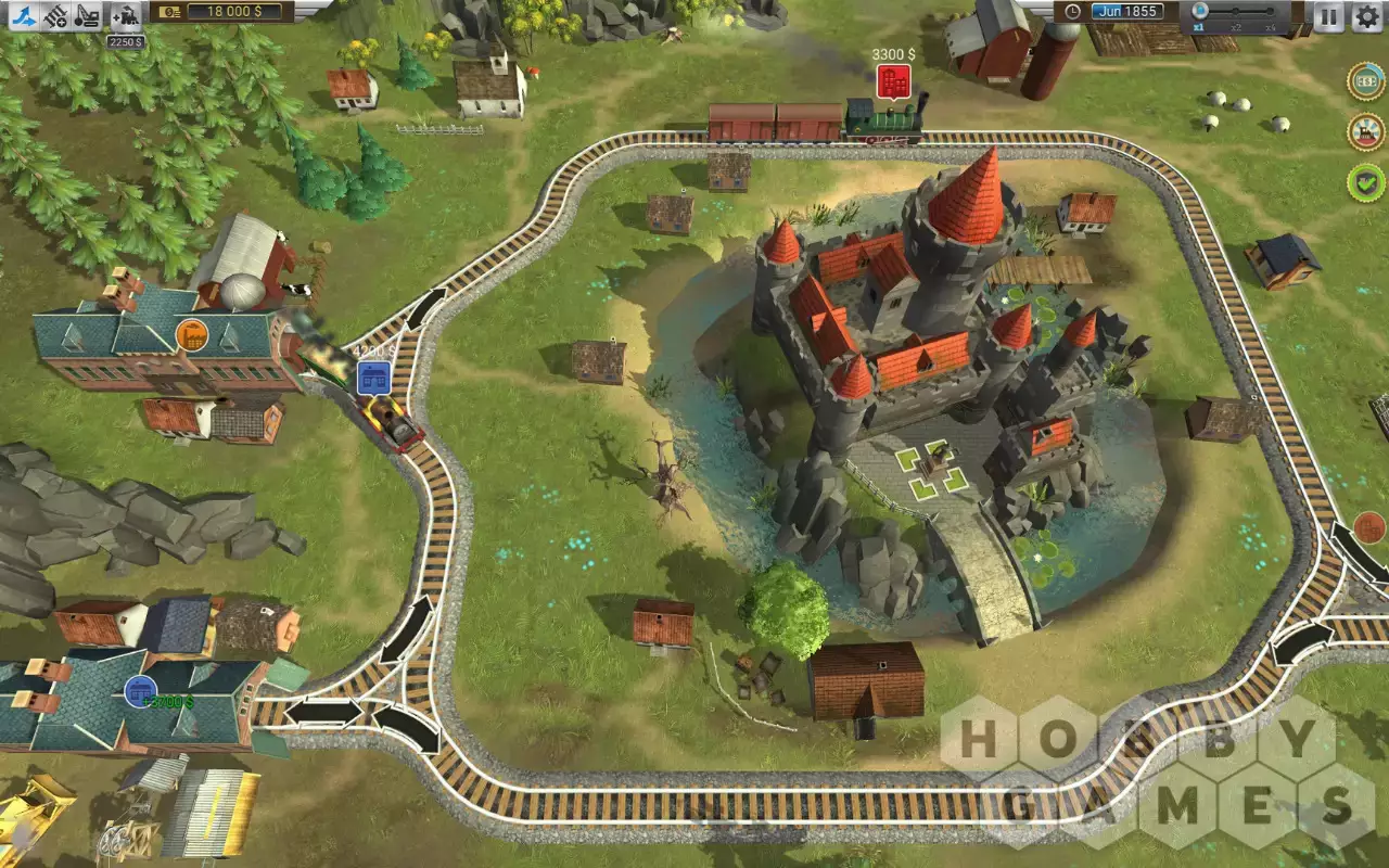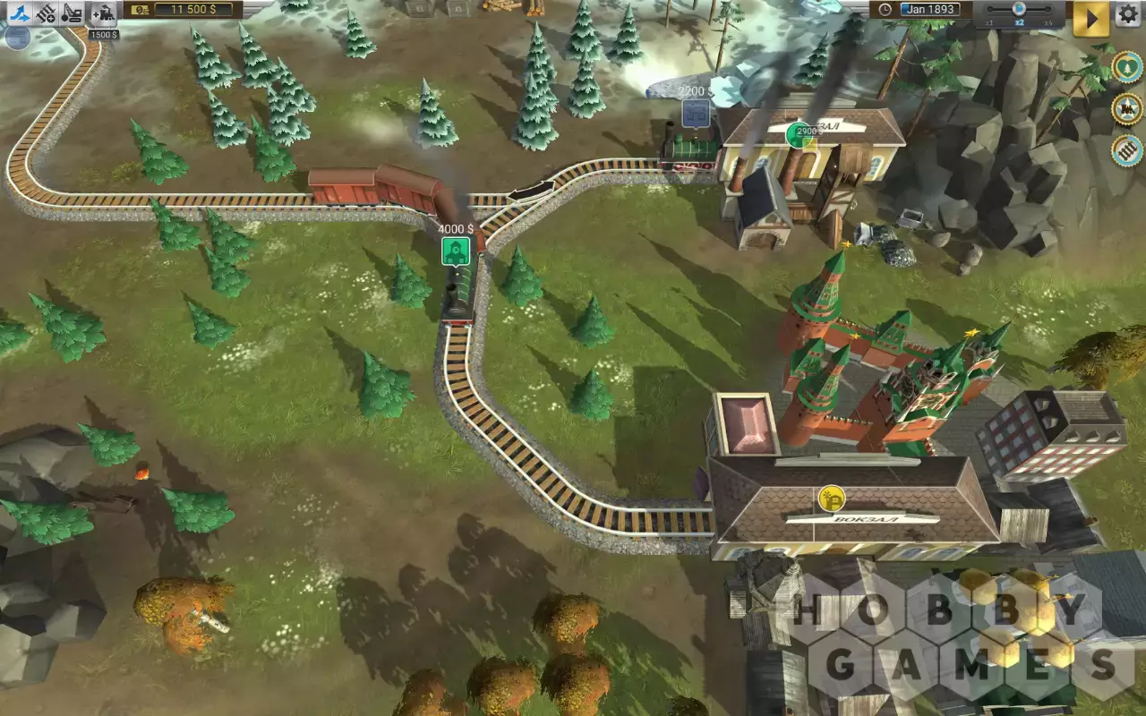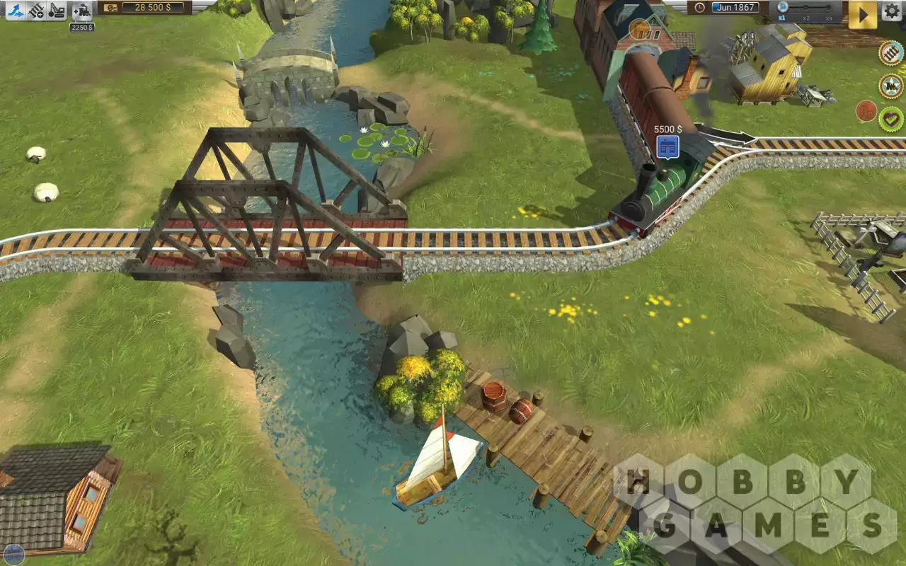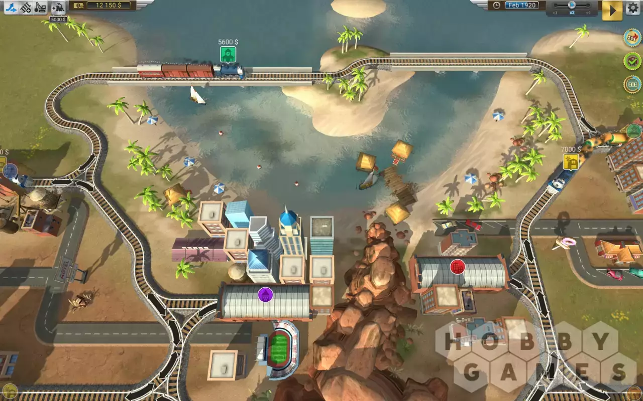 - Постройте железную дорогу так, чтобы соединить города, тоннели и мосты. Планируйте расположение путей максимально экономично, избегая дополнительных трат на клетках с деревьями, жилыми постройками и другими объектами.