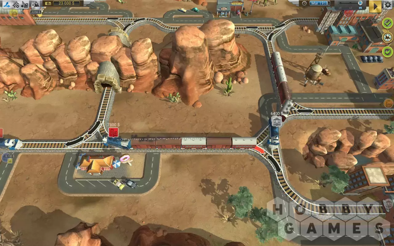 - От уровня к уровню управлять трафиком будет все сложнее. Вам придется строить разветвленные дороги со стрелками и перекрестками, чтобы иметь возможность доставлять сразу несколько составов одновременно.
