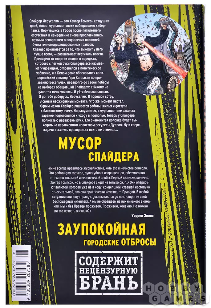 Спайдер Иерусалим – некогда известный гонзо-журналист – пресытился всем этим на всю жизнь. Выкупив одинокий дом на далёкой горе, он окружил жилище минным полем и твёрдо решил никогда больше не возвращаться в Город... Да вот только судьба решила иначе. А точнее, иначе решил его начальник, который спустя пять блаженных лет сообщил журналисту, что тот задолжал издательству аж две новые книги! Выбора нет: Спайдер вынужден вернуться в Город и с головой нырнуть в царящий там хаос, от которого неподготовленному просто снесёт крышу.