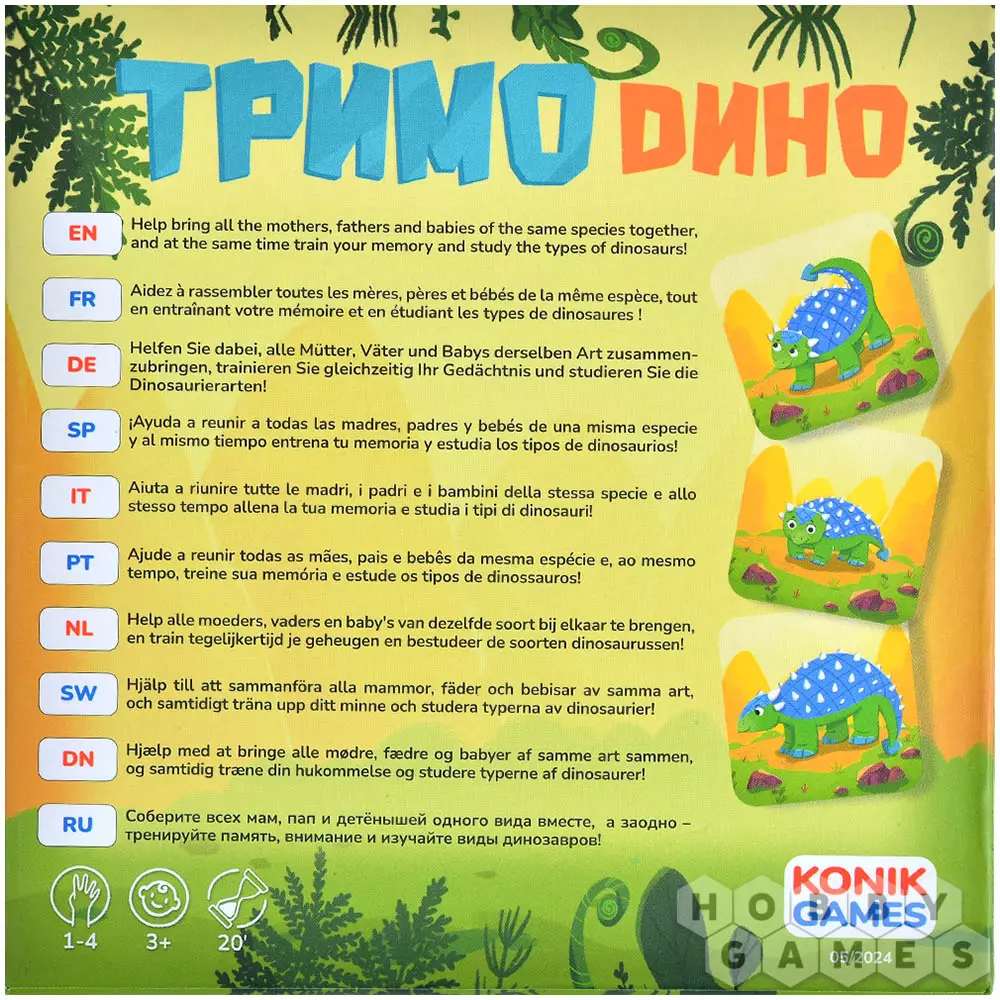 "Тримо" – карточная игра, по сути своей похожая на "Мемо", только с небольшими изменениями. В то время как в "Мемо" вам нужно было искать одинаковые карточки, здесь вы будете собирать сочетания – мама, папа и детёныш. Для этого нужно, по классике, разложить на столе карты рубашкой вверх. В каждый свой ход вы сможете открыть несколько карт. Если они сочетаются – вы забираете их себе и становитесь на шаг ближе к победе, если нет – переворачиваете обратно и ход переходит следующему игроку. Постарайтесь опередить своих соперников и не забывать расположение уже когда-то открытых карточек! В игре несколько уровней сложности – благодаря этому игра подойдёт как взрослым, так и детям. Побеждает тот, кто соберёт больше сочетаний. А плюсом к победе идёт то, что вы отлично тренируете свои память, внимание и логику! Прекрасный вариант для эффективного, но увлекательного развития.
