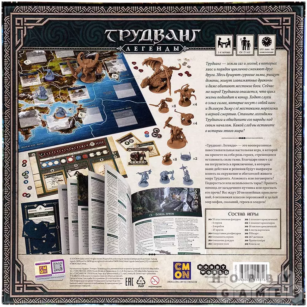 Отправьтесь в кооперативное приключение в настольной игре "Трудванг: Легенды"! Пришло время стать отважными героями, что борются со злом, и оставить собственный след в летописях этого мира. Откройте книгу саг, чтобы начать вашу историю! Как вы поступите в случае угрозы: сразу пойдёте в атаку или попробуете поговорить? Спланируете скрытую атаку или обрушите на врага мощь всего своего магического арсенала? Какие бы решения вы ни приняли, они повлекут за собой последствия, которые обязательно отразятся не только на окружающем вас мире, но и на его обитателях. У вас впереди 20 нелинейных приключений, 6 совершенно уникальных классов героев и огромный мир сказаний, мифов и легенд. Станьте их частью и напишите собственную сагу в мире Трудванга!