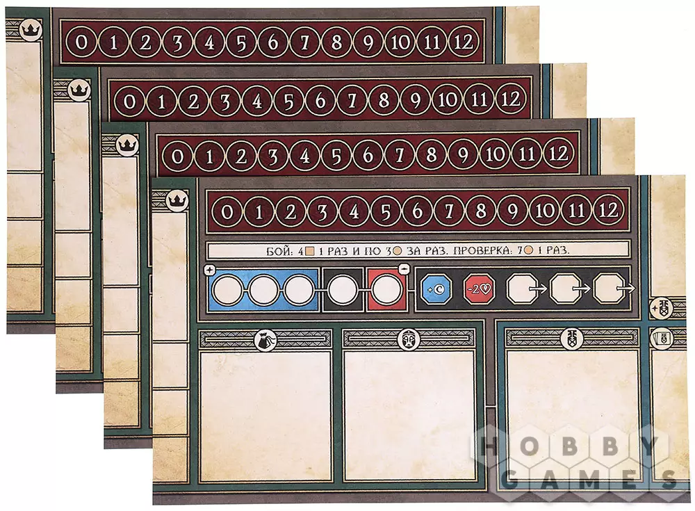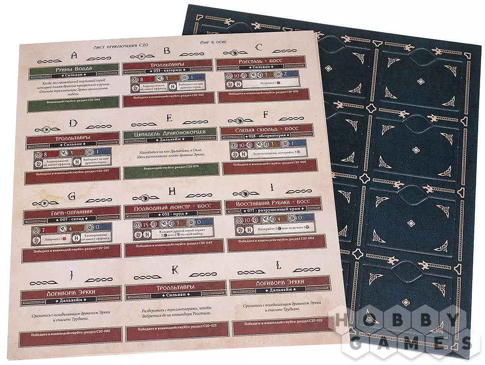 Подготовьте игровое поле, планшет приключений и планшет ориентиров. В последний вставьте лист того приключения, в которое вы собираетесь отправиться. Всё готово, можно выдвигаться в путь!