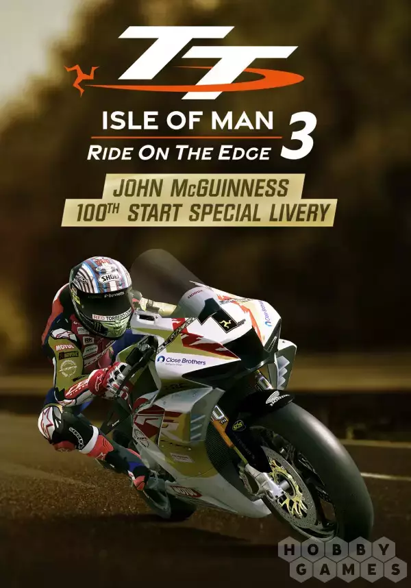 Проживите 100-й старт Джона МакГиннеса на мотоцикле с детально воссозданной юбилейной окраской. Для многих гонщиков и фанатов сэр Джон МакГиннес — одна из самых выдающихся легенд мотоспорта. Он завоевал 23 первых и 47 призовых мест и впервые установил среднюю скорость свыше 209 км/ч (130 миль/ч) в 2007 году. В набор входит уникальная золотая окраска мотоцикла и форма Джона МакГиннеса — дань его вкладу в гонки TT на острове Мэн.