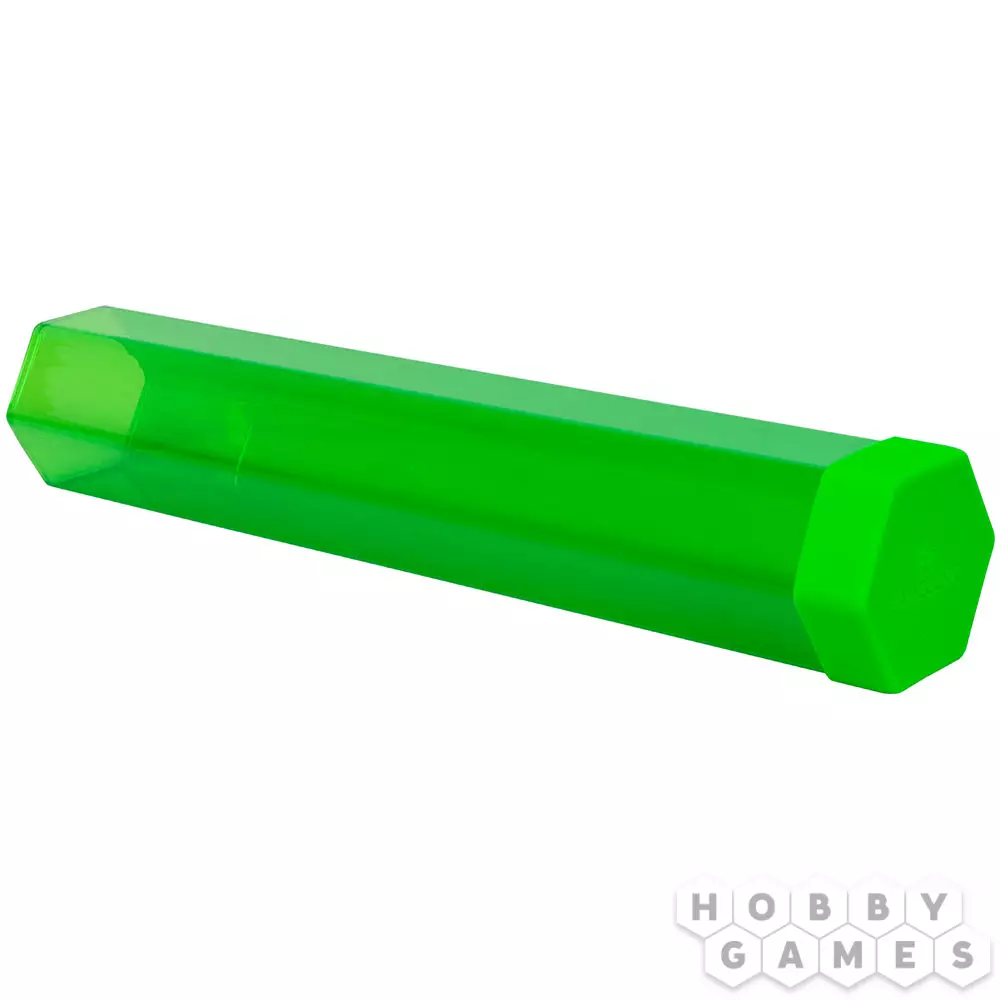 Тубус для плеймата от компании Gamegenic призван защитить ваше игровое поле от пагубного воздействия жидкости и механических повреждений. Форма тубуса – шестигранная, таким образом уменьшается шанс, что он скатится со стола от неудачного движения. Тубус плотно закрывается крышкой, сделанной из гибкого материала (чтобы внутрь него не попадала вода), сделан из полупрозрачного пластика и представлен в нескольких сочных и ярких цветах.