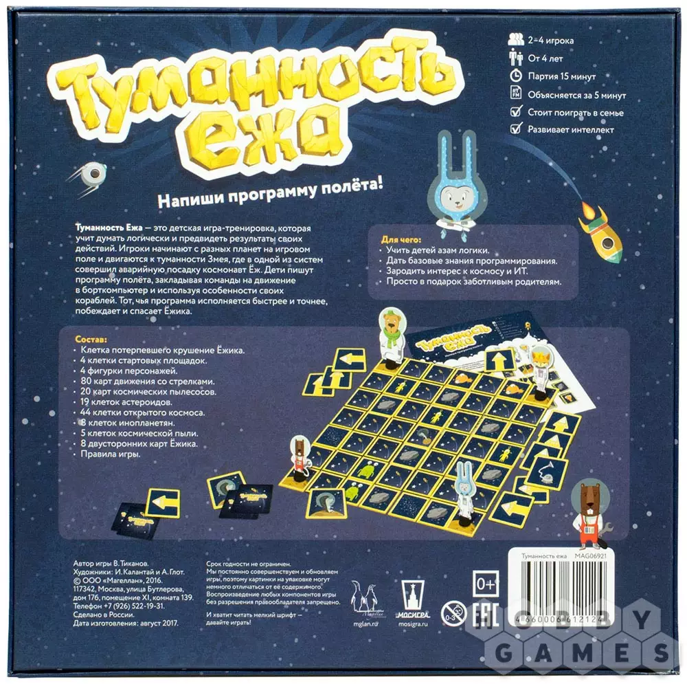 Космос – опасное место, особенно, если ты маленький Ёжик-космонавт! Храбрый капитан звездолёта пропал где-то в этой туманности, известны только его координаты. Но никакие опасности не страшны, когда есть верные друзья! На помощь колючему герою отправляются его коллеги – Лисичка, Зайчик, Медведь и Бобёр! Но как просчитать путь до места кораблекрушения? Тут должны помочь игроки – они видят всю карту туманности и могут давать команды кораблям спасателей. Учтите уникальные способности вверенного вам пилота и его судна, составьте план полёта и первым доберитесь до Ёжика!