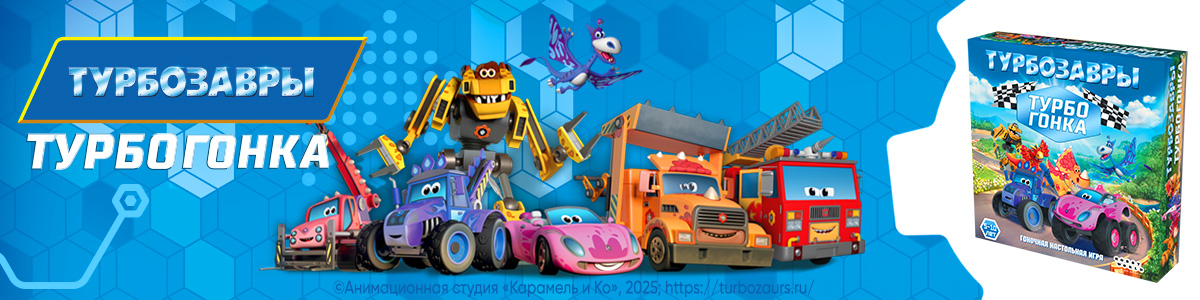 В ней мы выбираем себе турбозавра, а затем ход за ходом бросаем 4 кубика, перебрасывая любые до двух раз. Чем больше одинаковых чисел получаем — тем быстрее мчимся к финишу, не забывая, что можно сократить дорогу, воспользовавшись срезами (для этого нужно иметь кубики с подходящими значениями). А если хотя бы на двух кубиках вышло число, соответствующее превращению, наш турбозавр оборачивается в более скоростную форму — машину (а оказавшись в лидерах — обратно).