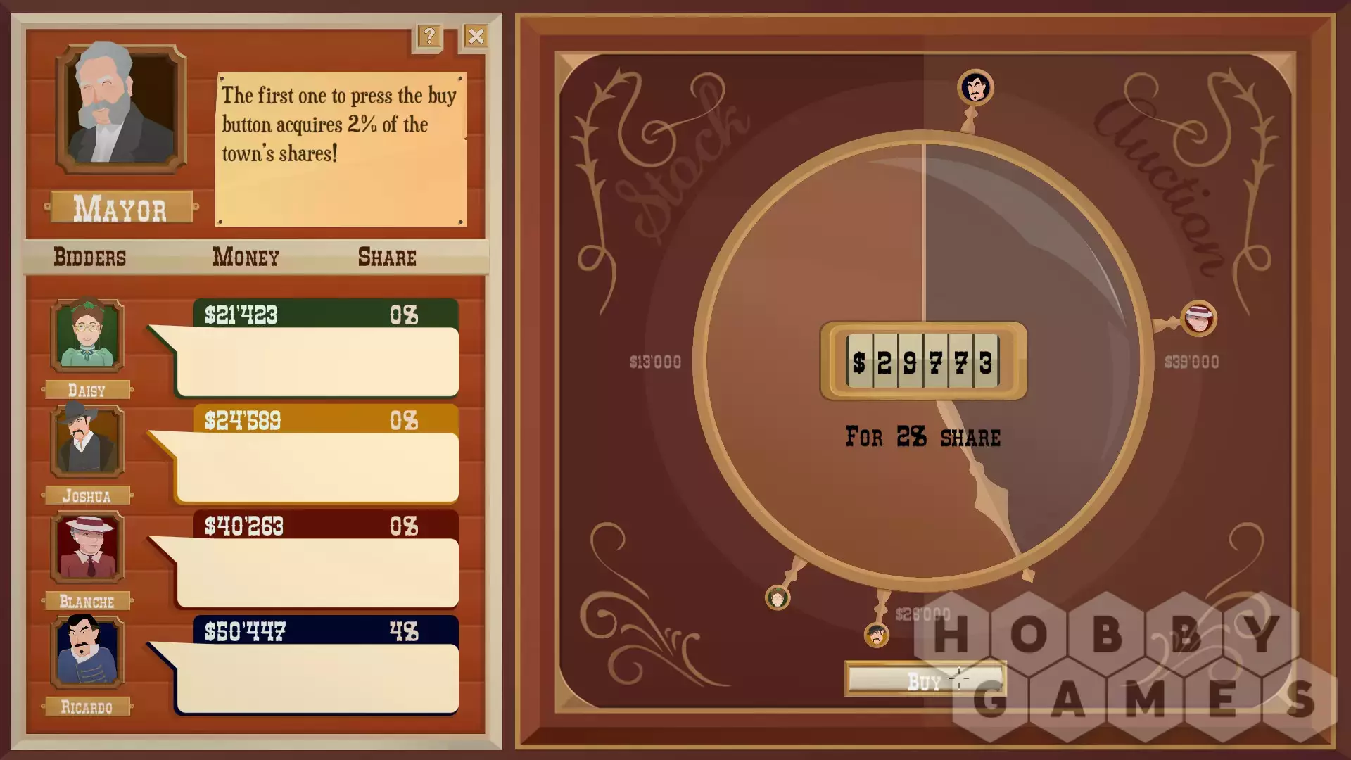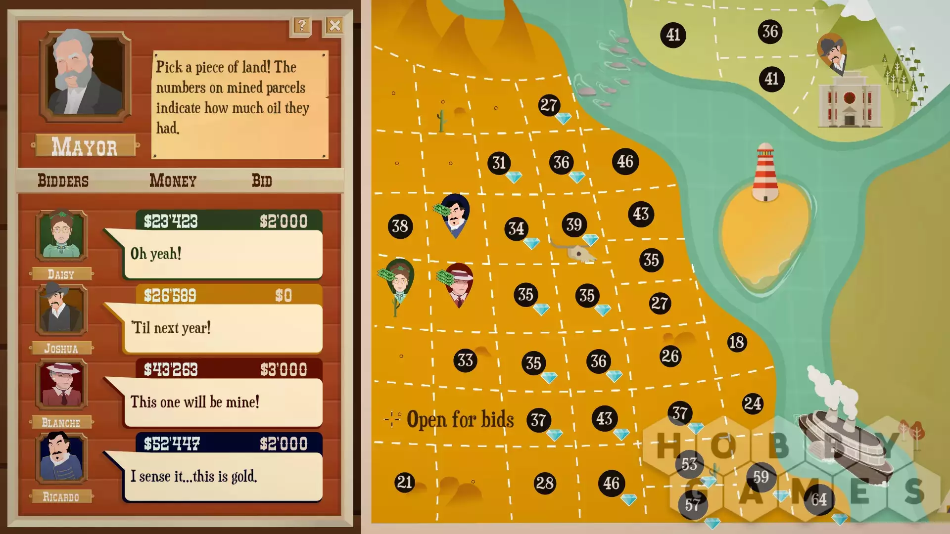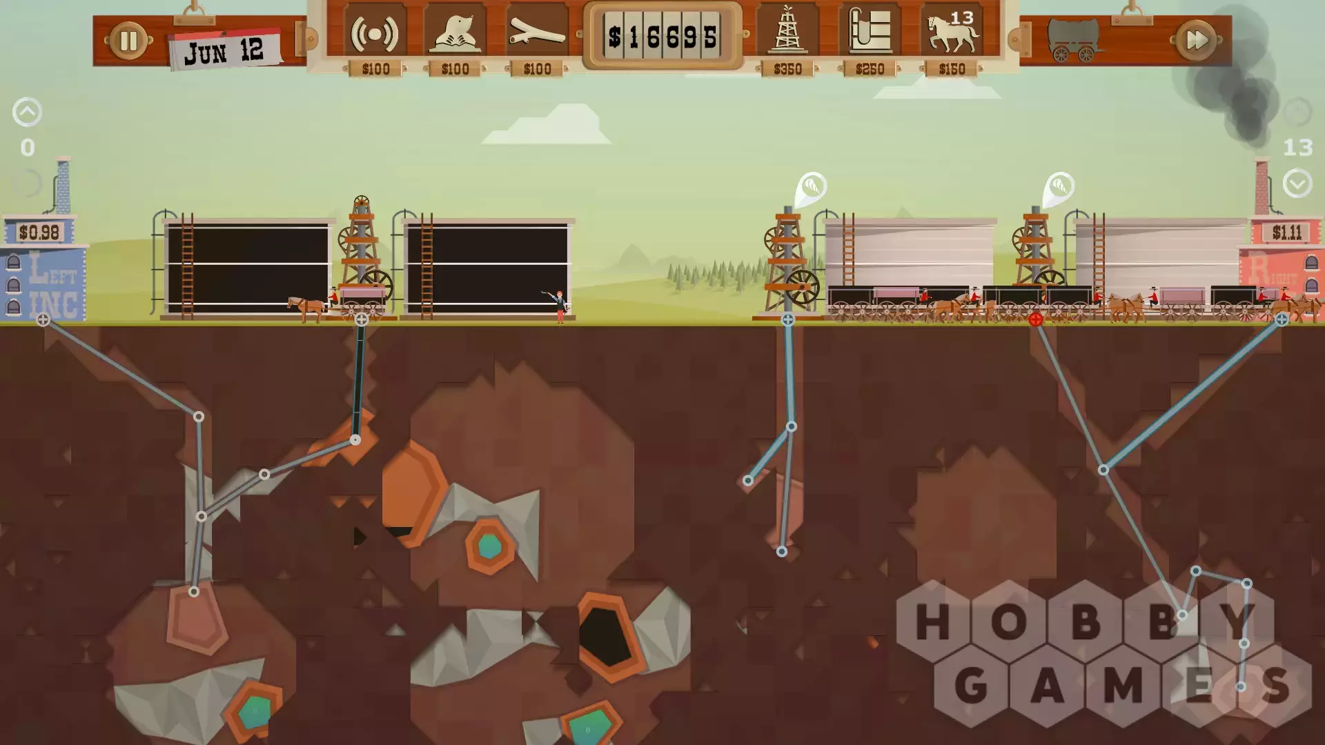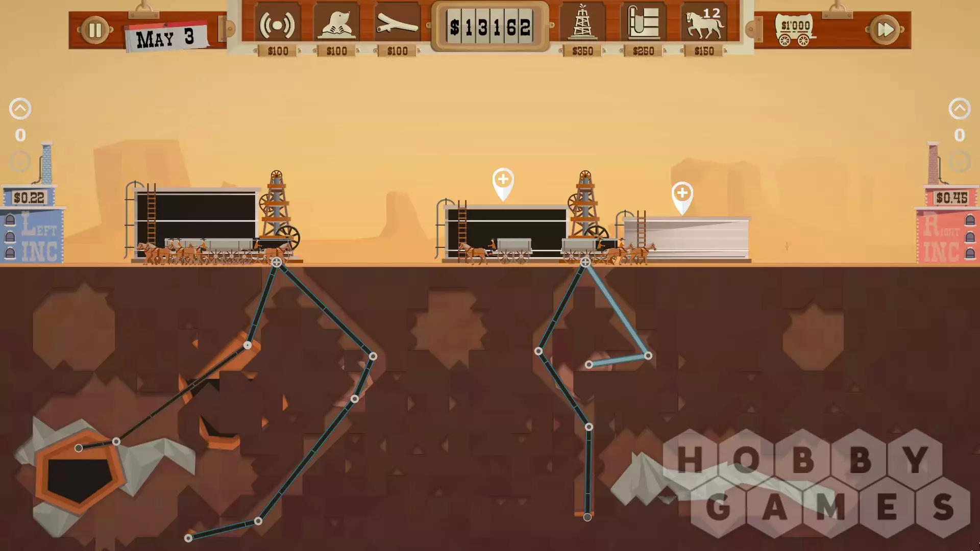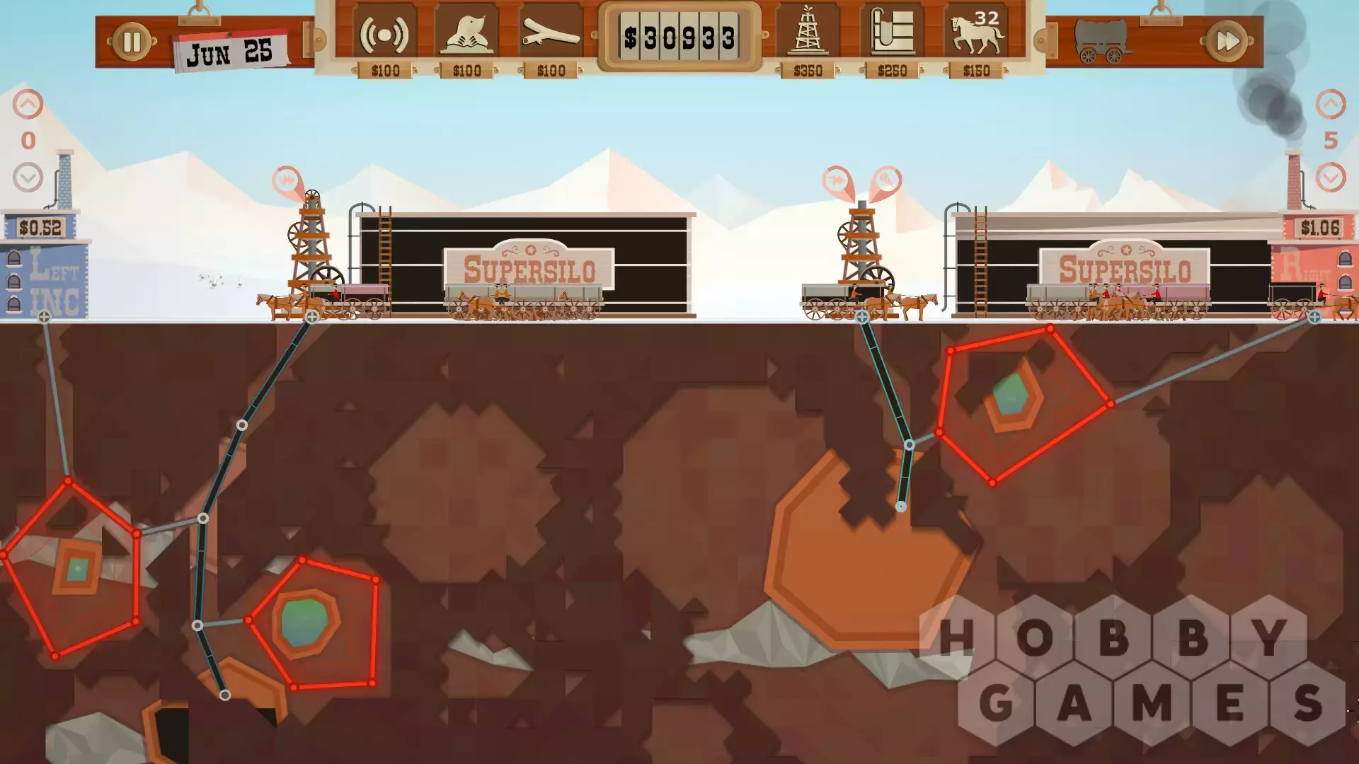 Арендуйте землю на городском аукционе и ищите нефть. Постройте буровую и эффективную трубопроводную сеть и закачивайте нефть на хранение в резервуары. Продавайте нефть в самое удачное время, чтобы до максимума увеличить прибыль. Затем покупайте важные улучшения в городе, чтобы справиться со скалами, газом и льдом. Приобретайте больше акций города, чем ваши конкуренты, в попытке стать новым мэром.