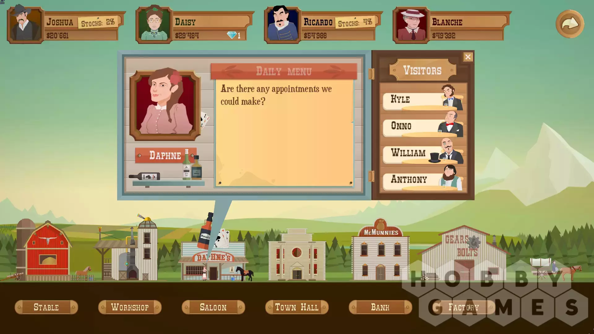- Встречайтесь из персонажами из города в салуне и заключайте сомнительные сделки.