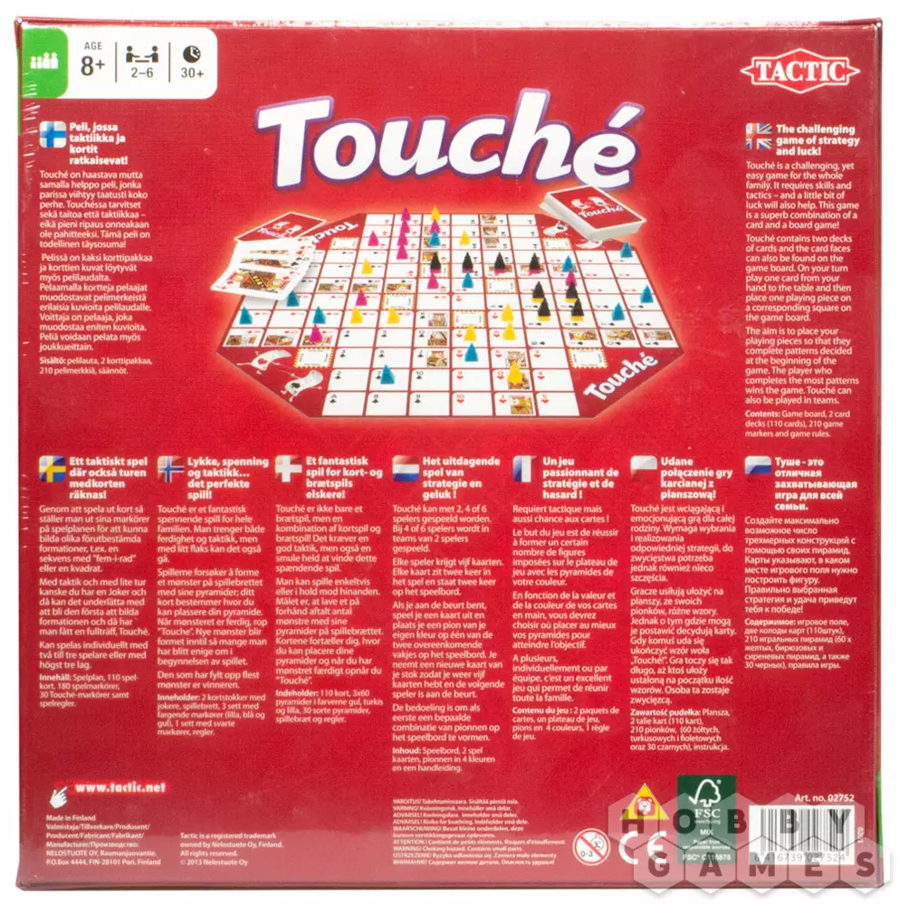 "Туше" – это всемирно известная абстрактная стратегическая игра, в которой вам предстоит выстраивать определённые фигуры на игровом поле. В игру могут играть 2-3 игрока друг против друга или 4-6 игроков, поделённые на две команды.